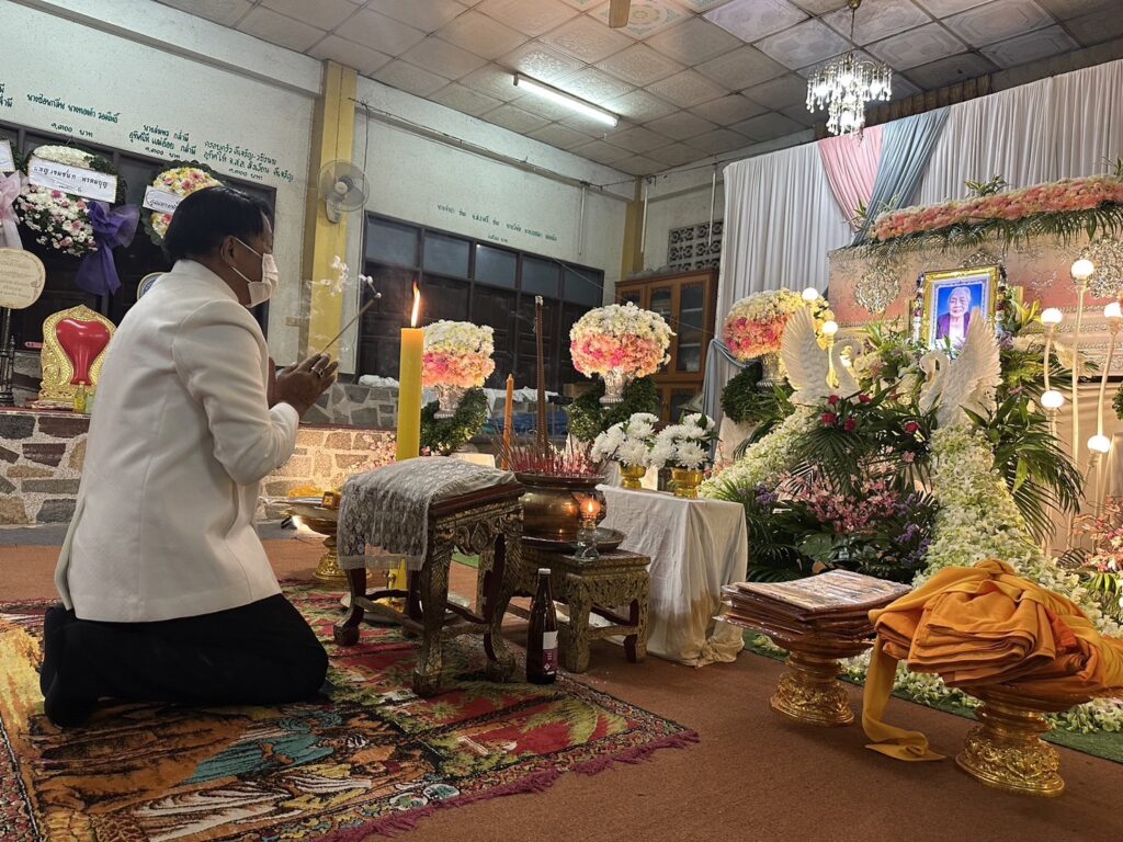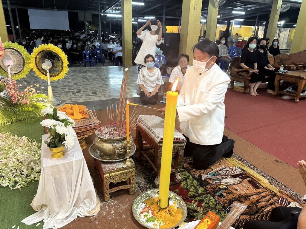 ร่วมงานเป็นประธาน สวดพระอภิธรรม คุณแม่ ผัน พัทยะเขต อายุ 90 ปี เพื่อ(จุด เทียน ธูป เคารพศพ) คุณแม่ผัน พัทยะเขต โดยมี ครอบครัว