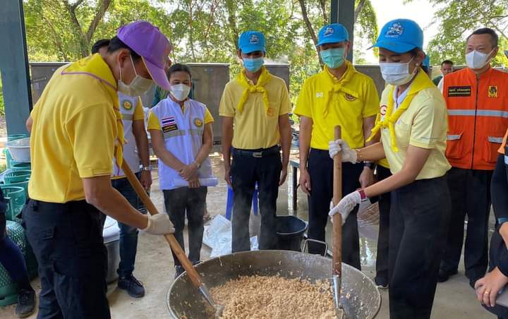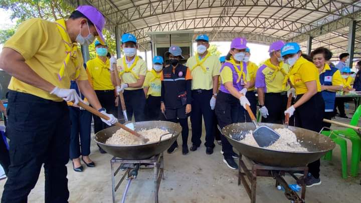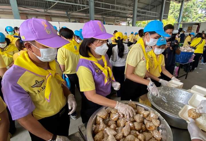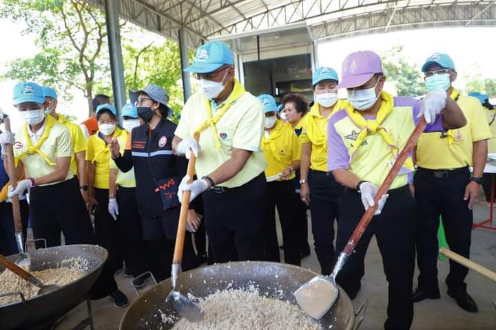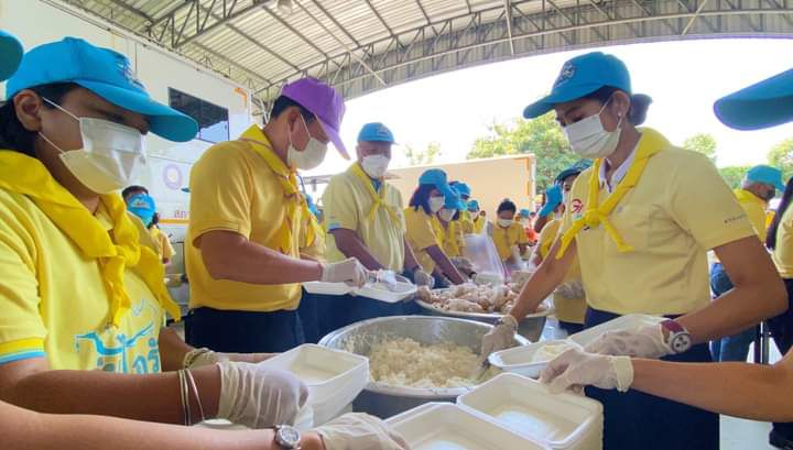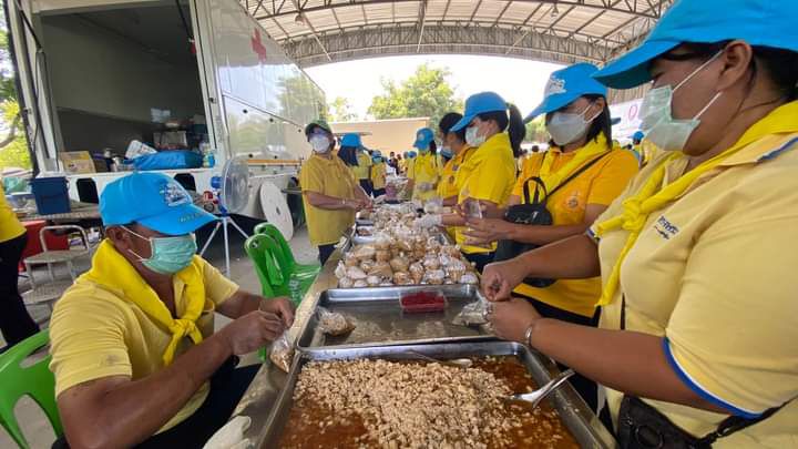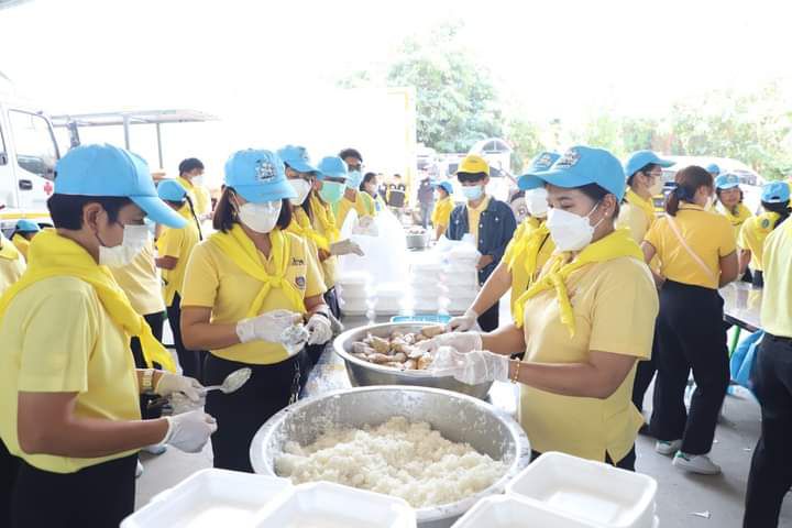 วันพุธ19 ตุลาคม 2565 เวลา 11.30 น. นายนิวัฒน์ รุ่งสาคร ผู้ว่าราชการจังหวัดพระนครศรีอยุธยา พร้อมด้วย นางวัชราภรณ์ รุ่งสาคร นายกเหล่ากาชาดจังหวัดพระนครศรีอยุธยา ได้เดินทางไปที่โรงครัวพระราชทาน มูลนิธิอาสาเพื่อนพึ่ง (ภาฯ) ยามยาก สภากาชาดไทย ณ ที่ทำการองค์การบริหารส่วนตำบลบ้านป้อม อำเภอพระนครศรีอยุธยา จังหวัดพระนครศรีอยุธยา ในการดำเนินการประกอบอาหารปรุงสุก เพื่อแจกจ่ายให้กับประชาชนที่ประสบอุทกภัยในพื้นที่จังหวัดพระนครศรีอยุธยา ระหว่างวันที่ 19 - 28 ตุลาคม 2565 รวม 10 วัน โดยมี นางสมทรง พันธ์เจริญวรกุล นายกองค์การบริหารส่วนจังหวัด นายวิทยา เขียวรอด นายอำเภอพระนครศรีอยุธยา ว่าที่ร้อยตรี ดร.ภาณุพงศ์ ศิริ ปลัดอาวุโสรักษาราชการแทนนายอำเภอบางไทร ผู้แทนนายอำเภอ หัวหน้าส่วนราชการ ผู้นำท้องที่/ท้องถิ่น จิตอาสา 904 จิตอาสาพระราชทาน และประชาชน ร่วมดำเนินการประกอบอาหารแจกจ่ายในวันนี้ ได้แก่ อำเภอผักไห่ 2,200 กล่อง อำเภอเสนา 4,500 กล่อง อำเภอบางไทร 5,000 กล่อง อำเภอพระนครศรีอยุธยา 4,210 กล่อง อำเภอบางบาล 5,000 กล่อง ตลอดจน กำลังทหาร เจ้าหน้าที่ที่มาร่วมปฏิบัติงาน ประชาชน และผู้มาขอรับ จำนวน 4,000 กล่อง รวมจำนวน 25,000กล่อง เมนูวันนี้ประกอบด้วย ข้าวผัดพริกแกงไก่ใส่ถั่วฝักยาว และข้าวไก่กระเทียม จำนวนประมาณ 25,000 กล่อง