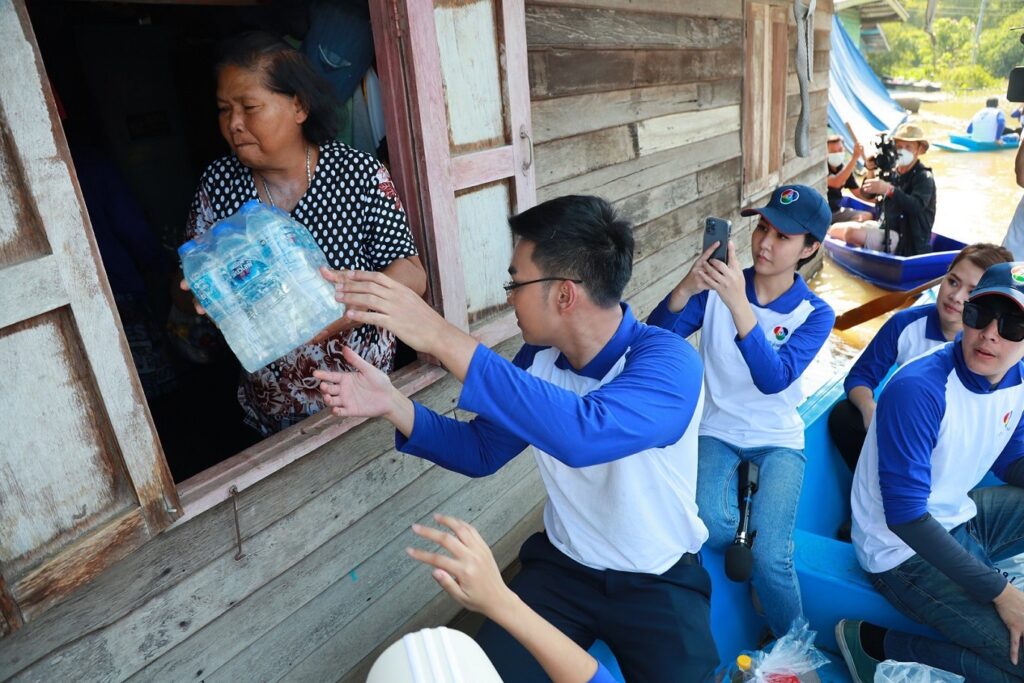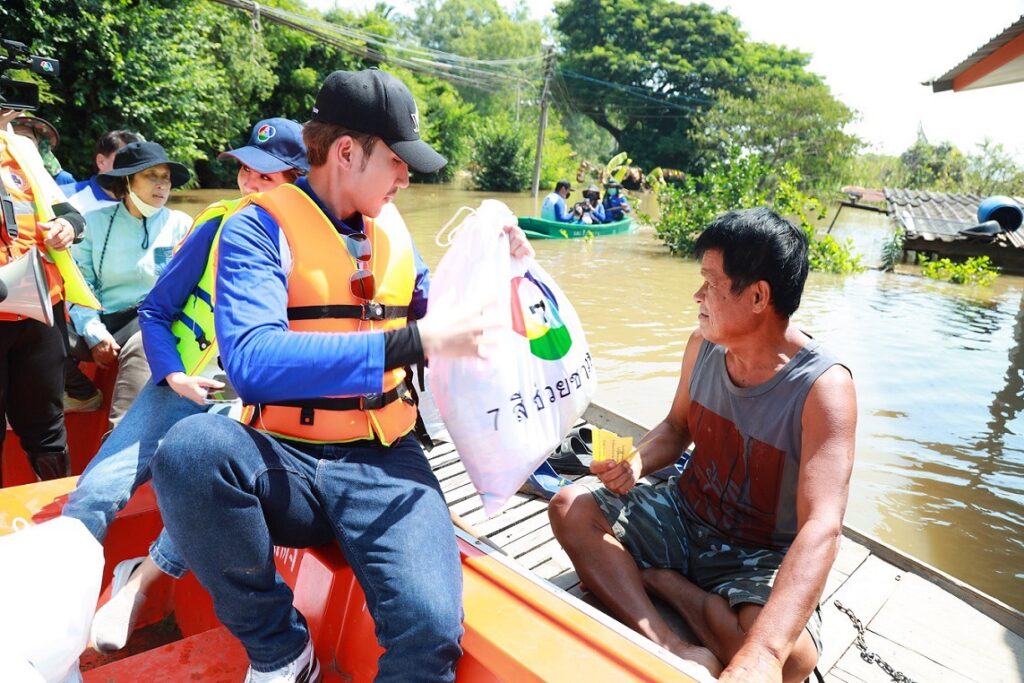 บิ๊กเอ็ม กฤตฤทธิ์ ผู้แทนนักแสดงร่วมเสริมว่า “ช่อง 7HD พร้อมเคียงข้างเพื่อประชาชนเสมอ การได้มาร่วมลงพื้นที่ พวกเราเข้าใจในความลำบากของทุกคนครับ แต่เมื่อเราไม่สามารถหลีกเลี่ยงภัยธรรมชาติได้ หลาย ๆ คน ได้รับความเดือดร้อนอย่างหนัก บางบ้านน้ำท่วมสูงจนอยู่อาศัยลำบาก ต้องปรับตัวรับมือ รวมถึงการสัญจรไปมายากลำบาก ใช้ได้เพียงเรือเท่านั้น ดังนั้นความช่วยเหลือทั้งน้ำและอาหารจากภายนอกเป็นสิ่งจำเป็นไม่น้อย ผมขอเป็นส่วนหนึ่งในการให้กำลังใจแก่ผู้ประสบอุทกภัย และขอให้น้ำลดจนเข้าสู่สภาวะปกติได้ในเร็ววันนะครับ”