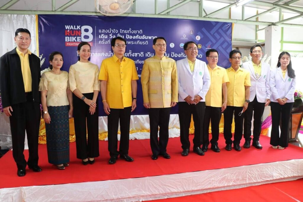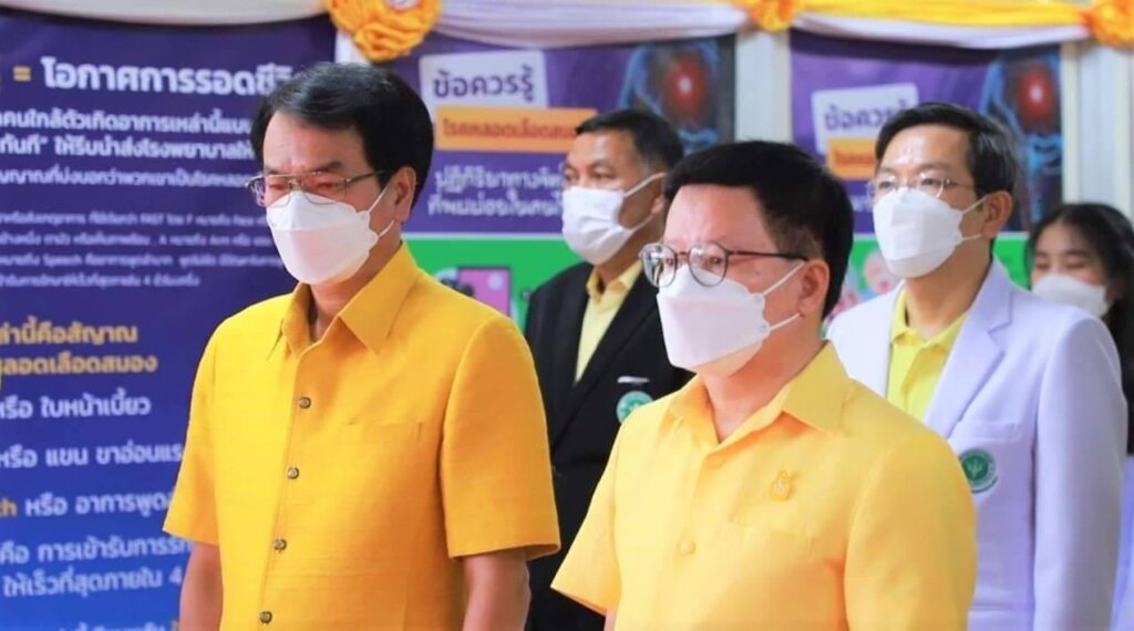 วันนี้ ( 21 ตุลาคม 2565 ) เวลา 10.50 น. ที่ ลานอังกะลุง โรงพยาบาลพหลพลพยุหเสนา อำเภอเมือง จังหวัดกาญจนบุรี ร้อยโท ทศพล ไชยโกมินทร์ ผู้ว่าราชการจังหวัดกาญจนบุรี เป็นประธานกล่าวถวายราชสดุดีและเปิดนิทรรศการเฉลิมพระเกียรติฯ นิทรรศการความรู้เรื่องโรคหลอดเลือดสมอง ภายใต้โครงการ “แสงนำใจไทยทั้งชาติ เดิน วิ่ง ปั่น ป้องกันอัมพาต ครั้งที่ ๘ เฉลิมพระเกียรติ” พร้อมด้วย นายชำนาญ ชื่นตา รองผู้ว่าราชการจังหวัดกาญจนบุรี นายอนุชา วรหาญ รองนายแพทย์สาธารณสุขจังหวัดกาญจนบุรี โดยมี นายแพทย์สมเจตน์ เหล่าลือเกียรติ ผู้อำนวยการโรงพยาบาลพหลพลพยุหเสนา กล่าวรายงานวัตถุประสงค์ของการจัดแสดงนิทรรศการในครั้งนี้ และ หัวหน้าส่วนราชการ ผู้บริหารโรงพยาบาลพหลพลพยุหเสนา แพทย์ พยาบาล เจ้าหน้าที่ และประชาชน เข้าร่วม