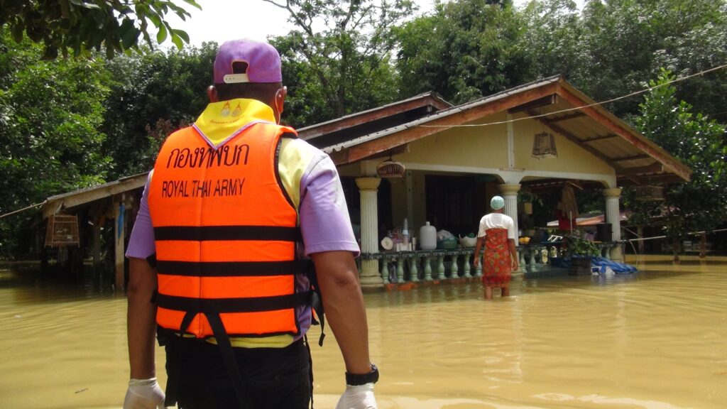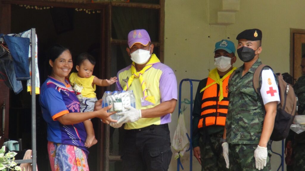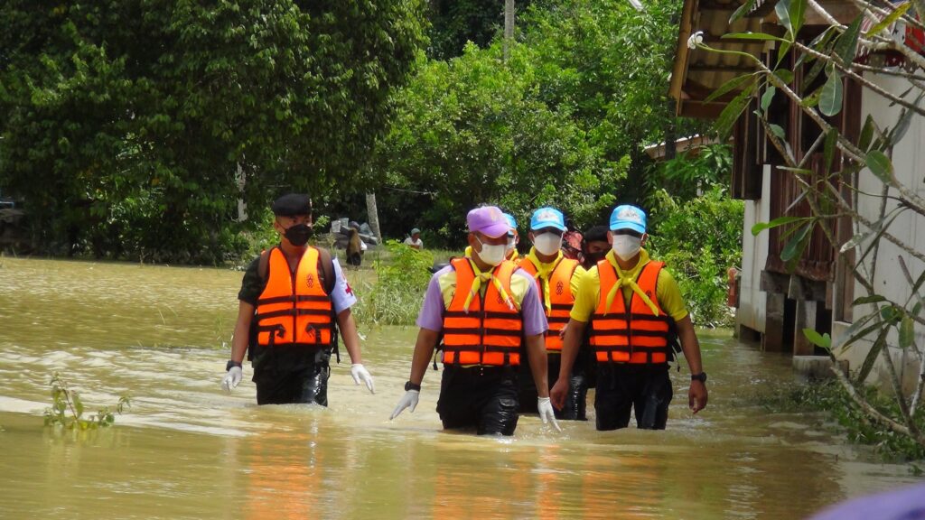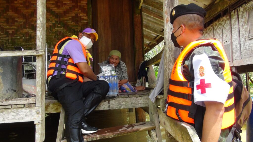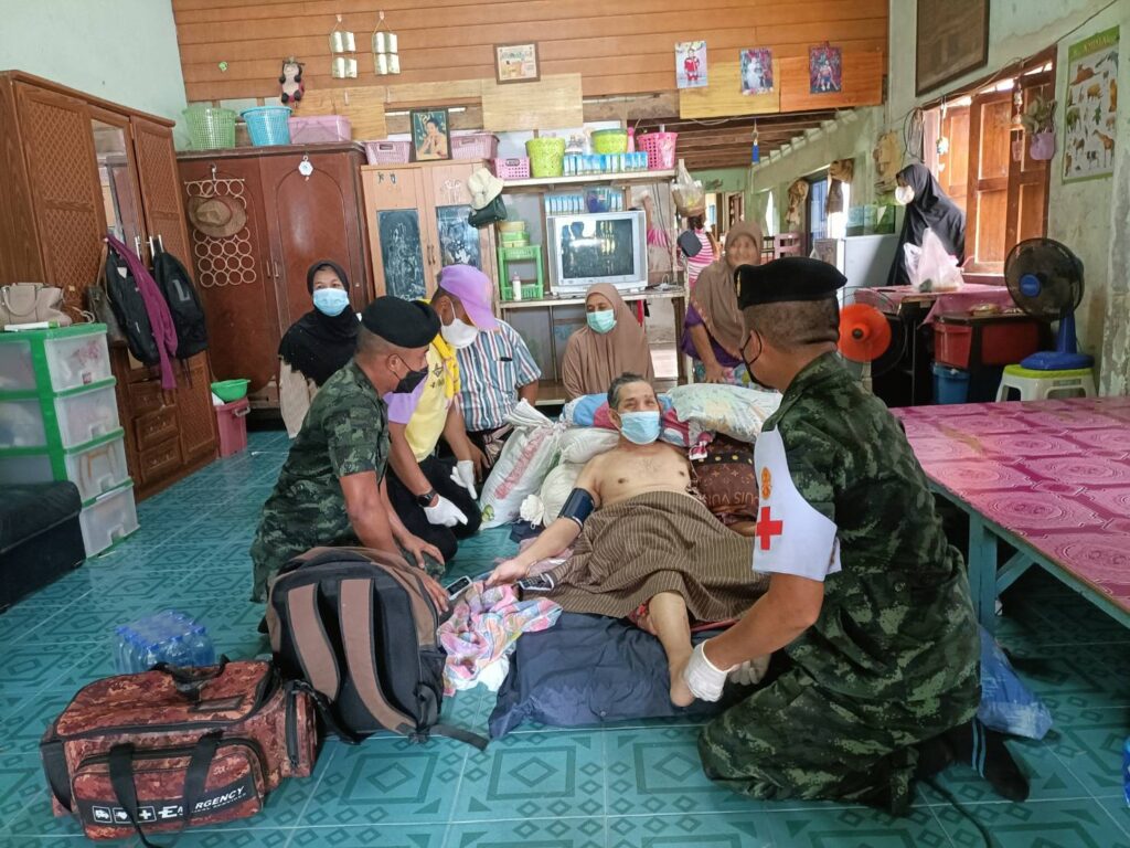 พ.อ. เรวัตร เซ่งเข็ม ผู้บังคับการกองพันทหารราบที่ 2 กรมทหารราบที่ 5 จังหวัดสตูล พร้อมด้วยหมอทหาร เดินลุยน้ำทีมีความลึกบางจุดลึกถึงเอว เพื่อไปดูความเดือนร้อนของชาวบ้าน และผู้ป่วยติดเตียงนอนรอความช่วยเหลืออยู่และรอความหวังที่หน่วยงานรัฐมาช่วยเช่นกัน นอกจากนี้ยังพบบ้านเรือนที่มีเด็กทารกแรกเกิดอยู่กับพ่อและแม่ สภาพบ้านที่มีน้ำท่วมรายล้อม แพทย์ทหารจึงไปตรวจสอบเยี่ยมดูอาการวัดความดัน และแนะนำการใช้ยา