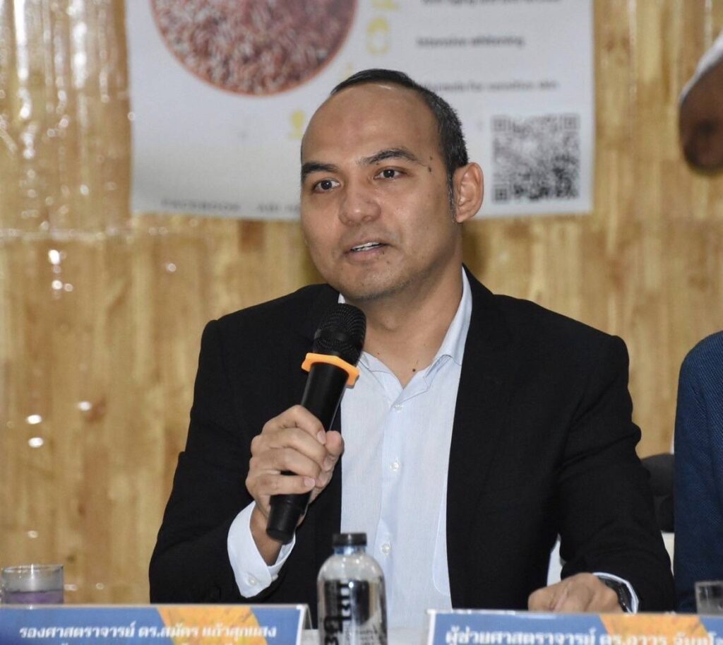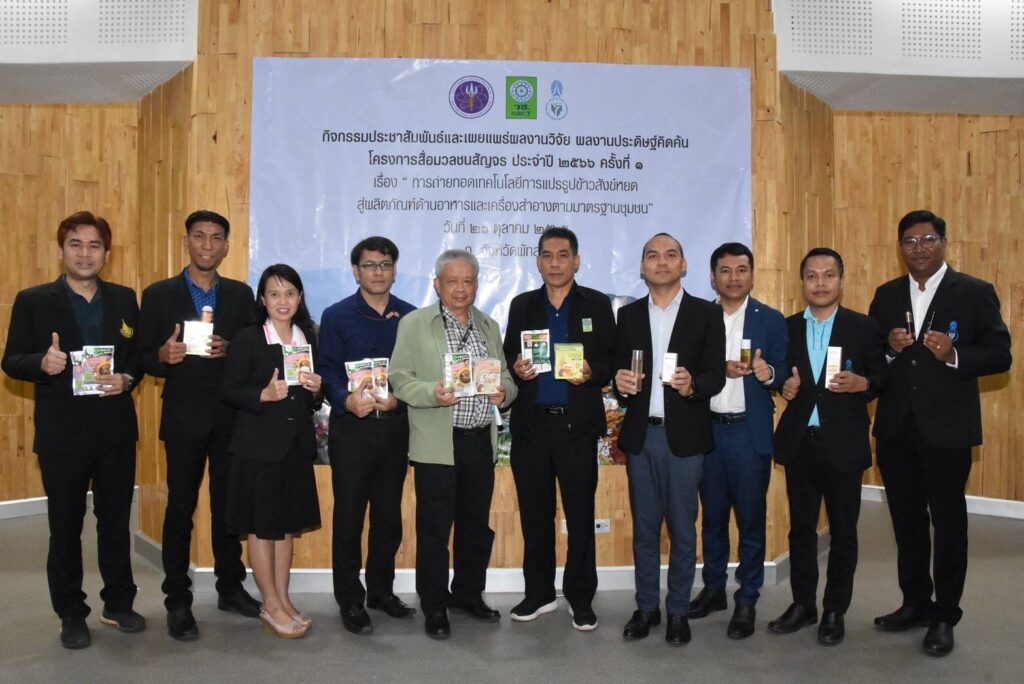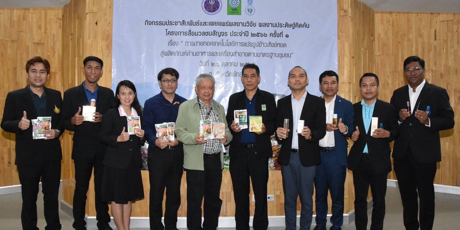 นายธีรวัฒน์ บุญสม ผู้อำนวยการกองส่งเสริมและสนับสนุนการวิจัย กล่าวว่า (วช.) ภายใต้กระทรวง (อว.) เป็นหน่วยงานหลักที่ให้การสนับสนุนทุนวิจัย พัฒนาบุคลากร ด้วยงานวิจัยและนวัตกรรม ซึ่งจากผลสำเร็จของโครงการ “การผลิตเครื่องดื่มฟังก์ชั่นนอลชนิดผงสำเร็จรูปจากสารสกัดข้าวกล้องสังข์หยดอินทรีย์สำหรับผู้สูงวัยและวัยทำงานเพื่อขับเคลื่อนเศรษฐกิจฐานราก” ได้เกิดผลผลิตที่สำคัญอันนำมาสู่การต่อยอด โครงการ “การถ่ายทอดเทคโนโลยีการแปรรูปข้าวสังข์หยดสู่ผลิตภัณฑ์มูลค่าสูงตามมาตรฐานชุมชน” ก่อให้เกิดการผลิตผลิตภัณฑ์พร้อมทั้งคู่มือองค์ความรู้ในการแปรรูปข้าวสังข์หยดสู่ผลิตภัณฑ์มูลค่าสูงและนวัตกรชุมชนที่มีองค์ความรู้ด้านการแปรรูปของชุมชนต้นแบบไปสู่การผลักดันให้เกิดผลิตภัณฑ์ที่สามารถจำหน่ายได้ในเชิงพาณิชย์และขยายผลสู่วงกว้างจากองค์ความรู้และผลิตภัณฑ์ต้นแบบที่ได้รับการพัฒนามาขยายผลต่อยอดสู่วิสาหกิจชุมชนที่มีศักยภาพ พร้อมทั้งใช้องค์ความรู้ที่มีอยู่ในการผลักดันให้เกิดผลิตภัณฑ์มูลค่าสูงจากการแปรรูปข้าวสังข์หยด ทั้งด้านอาหารและเครื่องสำอางโดยใช้วัตถุดิบที่เหลือจากข้าวหักท่อนและรำข้าวสู่ผลิตภัณฑ์อาหารและเครื่องสำอางให้ได้มาตรฐานผลิตภัณฑ์ชุมชนที่ได้มาตรฐาน อย. รองรับ ผลักดันพื้นที่ต้นแบบชุมชนเศรษฐกิจฐานรากชุมชนเข้มแข็งอย่างยั่งยืนต่อไป