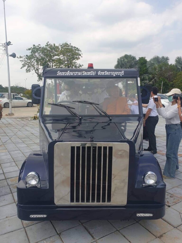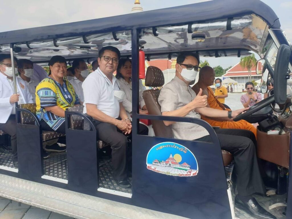 จากนั้นร้อยโท ทศพลฯ ได้ร่วมพิธีเปิดตัวรถรางของวัดเทวสังฆาราม(วัดเหนือ) เพื่อใช้ในการรับส่งประชาชน ผู้มีจิตศรัทธาที่จะมาไหว้พระทำบุญ ซึ่งเป็นการส่งเสริมการท่องเที่ยวของจังหวัดกาญจนบุรีในอีกทางหนึ่ง