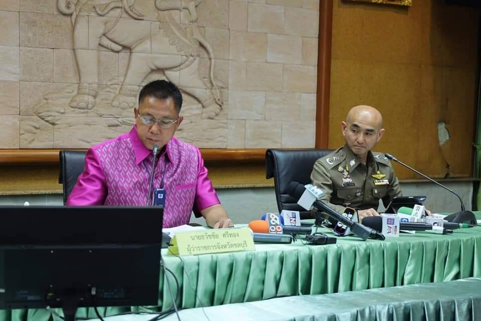 วันอังคารที่ 25 ตุลาคม 2565 นายธวัชชัย ศรีทอง ผู้ว่าราชการจังหวัดชลบุรี พร้อมด้วยพลตำรวจตรี กิตติ์ธเนศ ธนนันท์ทวีสิน ผู้บังคับการตำรวจภูธรจังหวัดชลบุรี ร่วมแถลงข่าวกรณีสถานบันเทิงพื้นที่พัทยาที่กำลังเป็นกระแสสังคมในปัจจุบัน ณ ห้องประชุมชลบุรี ศาลากลางจังหวัดชลบุรี