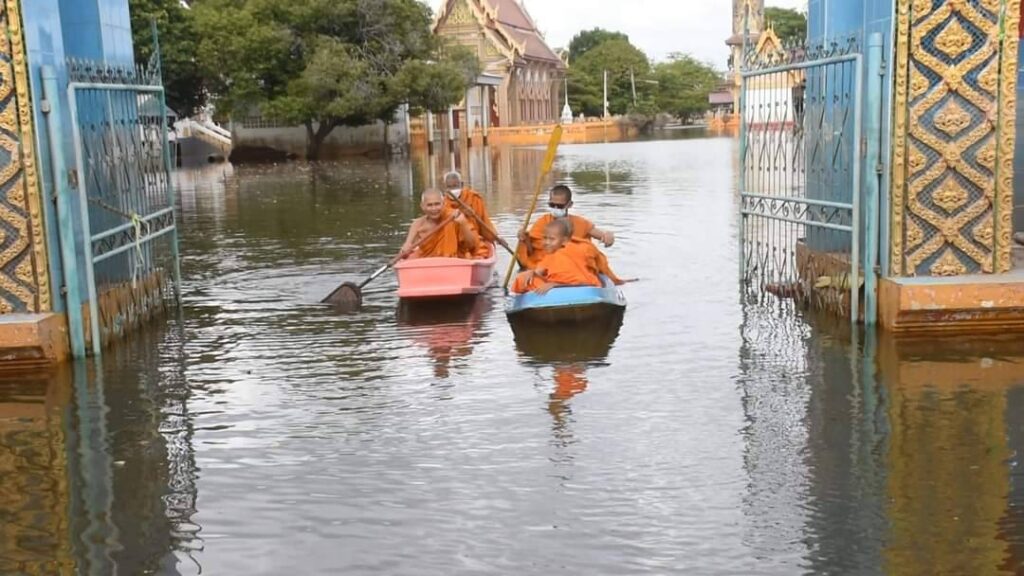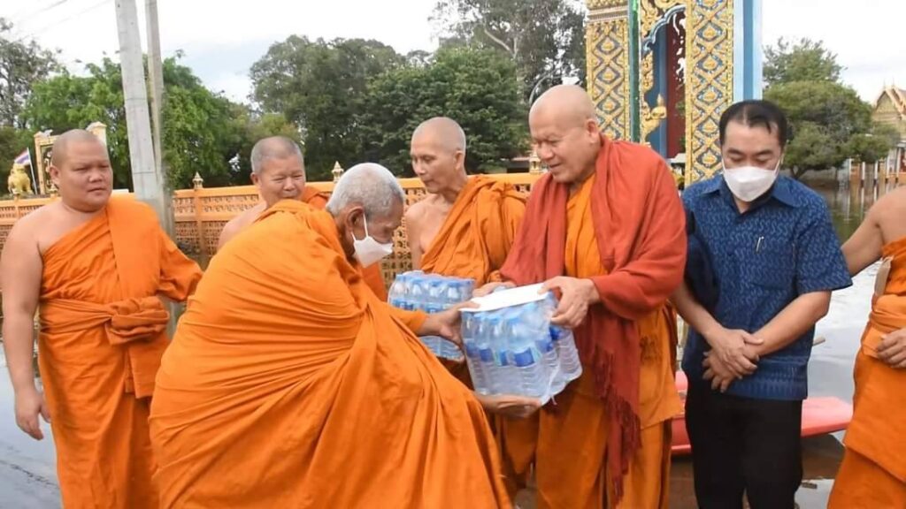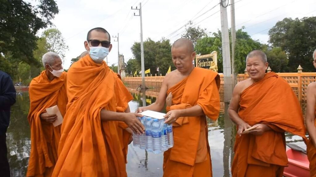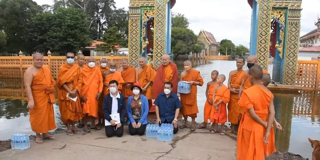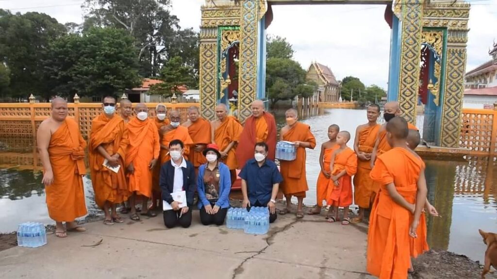 มอบสิ่งของข้าวสารอาหารแห้ง น้ำดื่มและสิ่งที่ขาดแคลนให้แก่วัดที่น้ำท่วมในพื้นที่จังหวัดสิงห์บุรี
