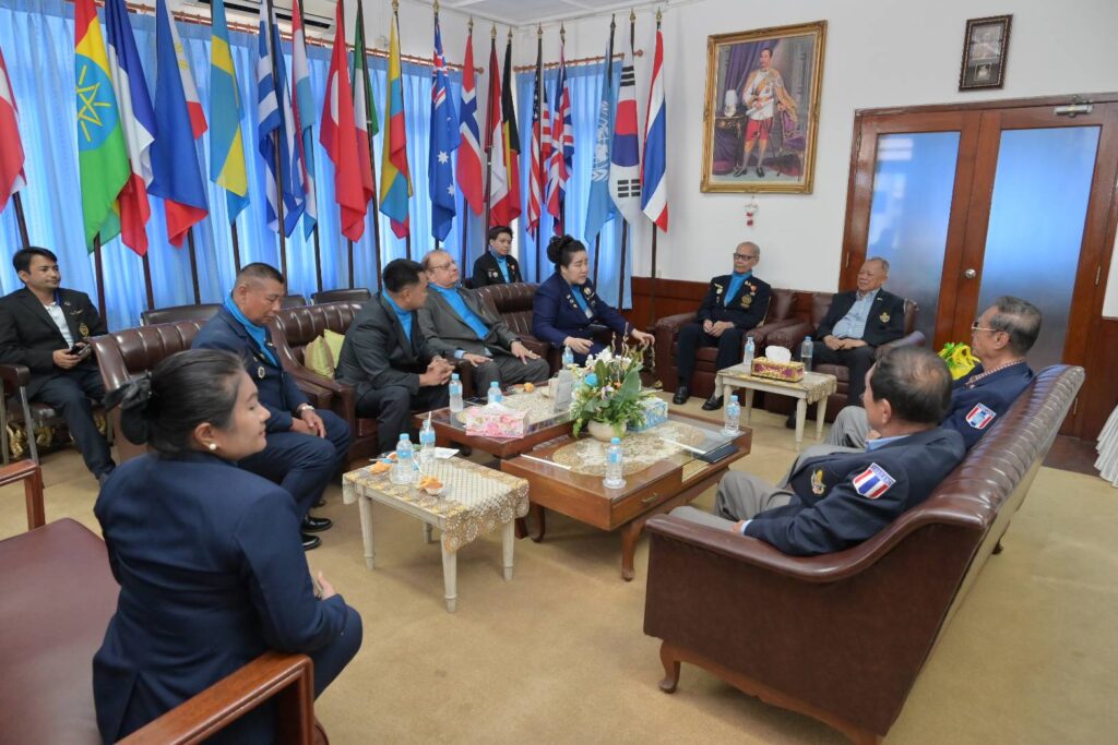 The organization met with General Bundit Malaiarisoon-President of the Korean War Veterans Association under the Royal Patronage, Air Chief Marshal Weerasak Kaenmanee-Vice President of the Association, and Air Chief Marshal Ronnayut Hiranburana-Secretary of the Association with the purpose to express gratitude and appreciation for their participation with the “Global Leadership Summit 2022” event at the Royal Thai Army Club on World Peace Day, organized at the Royal Thai Army Club, and their sponsorship on 1,200 bottles of UNPKFC drinking water, in order to support public activities for the association in the scholarship awarding ceremony for the heirs of Korean War Veterans of year 2022.
