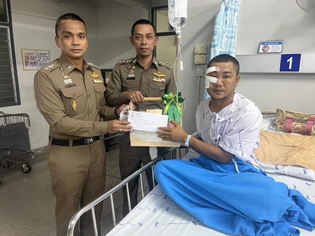 ซึ่งได้รับบาดเจ็บจากการปฏิบัติหน้าที่ เหตุปิดล้อม บ.ควนตีหมุน หมู่ที่ 7 ต.ปากบาง อ.เทพา จ.สงขลา เมื่อวันที่ 25 ต.ค.65 ที่ผ่านมา ในพื้นที่ สภ.เทพา จ.สงขลา