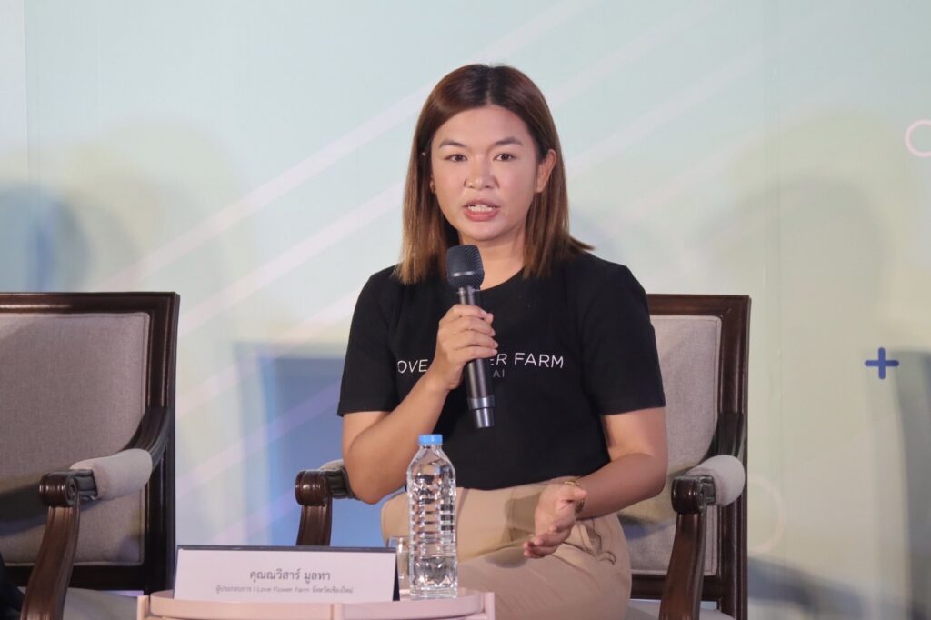 ขณะที่นางสาว ณวิสาร์ มูลทา เจ้าของ Love Flower Farm จ.เชียงใหม่ ให้ทัศนะว่า จากงานวิจัย 3 ปี ได้เริ่มผลิตดอกไม้มากขึ้นโดยเลือก มาร์กาเร็ต และคัตเตอร์ ซึ่งเป็นไม้ดอกมหัศจรรย์ที่นำไปใช้ในงานแต่งงานในปริมาณมาก และเป็นการใช้ครั้งเดียวทิ้ง เราสามารถหาช่องทางจากดอกไม้ทั้ง 2 ชนิดได้มากมาย จนปัจจุบันผลิตดอกไม้ใน 5 อำเภอ ในจังหวัดเชียงใหม่ บนพื้นที่ประมาณ 500 ไร่ ครึ่งหนึ่งเป็นคลัสเตอร์ แต่ปริมาณยังไม่เพียงพอกับความต้อง การซึ่งก่อนโควิด-19 มีความต้องการมากถึง 800,000 กิโลกรัมต่อปี ปัจจุบันสถานการณ์โควิด-19 ผ่อนคลาย ความต้องการของตลาดน่าจะสูงขึ้นกว่านี้มาก นอกจากนี้ ยังเปิดการท่องเที่ยวเป็นท่องเที่ยวชุมชน ที่ Love Flower Farm จ.เชียงใหม่ โดยฤดูท่องเที่ยวจะเริ่มตั้งแต่วันที่ 1 พฤศจิกายนนี้ มีคนขอเข้าเยี่ยมชมถึง วันละ 5,000 คน แต่รองรับได้แค่ 400 คน ต้องจำกัดคนเข้าชม “สิ่งที่อยากจะฝากก็คือ การแบ่งปัน และการนำศิลปะเข้ามาสู่ชุมชน เราพัฒนาทั้งเรื่องกลิ่นดอกไม้ เป็นกลิ่น I Love Flower Farm และยังมีเพลง ของที่ระลึก ขนมที่มาแล้วจะไม่ซ้ำกัน ดอกไม้จึงเป็นความภาคภูมิใจของเรา”