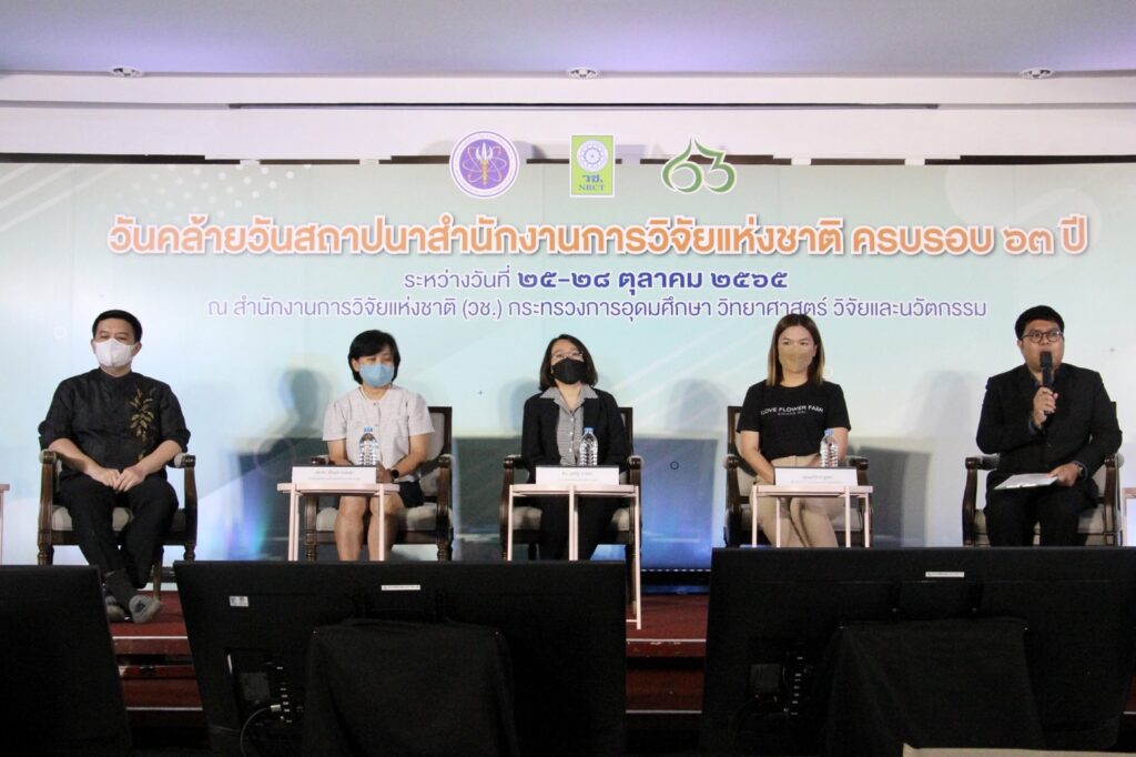 สำนักงานการวิจัยแห่งชาติ (วช.) กระทรวงการอุดมศึกษา วิทยาศาสตร์ วิจัยและนวัตกรรม (อว.) จัดเวทีเสวนา อัศจรรย์นานาพรรณไม้ดอกไม้ประดับ เนื่องในวันคล้ายสถาปนา (วช.) ครบรอบ 63 ปี เป็นวันที่สอง เมื่อ 26 ตุลาคม 2565 ภายใต้แนวคิด “63 ปี วช. มุ่งสู่สังคมอุดมปัญญาพัฒนาไทย ด้วยวิจัยและนวัตกรรม” เพื่อแลกเปลี่ยนมุมมอง ในการผลักดันอุตสาหกรรมไม้ดอกไม้ประดับสู่เศรษฐกิจสร้างสรรค์ จากงานวิจัย โดย ดร.วิภารัตน์ ดีอ่อง ผู้อำนวยการสำนักงานการวิจัยแห่งชาติ มอบหมายให้ นางสุภาพร โชคเฉลิมวงศ์ ผู้อำนวยการกองบริหารทุนวิจัยและนวัตกรรม 1 เป็นประธานเปิดเสวนา
