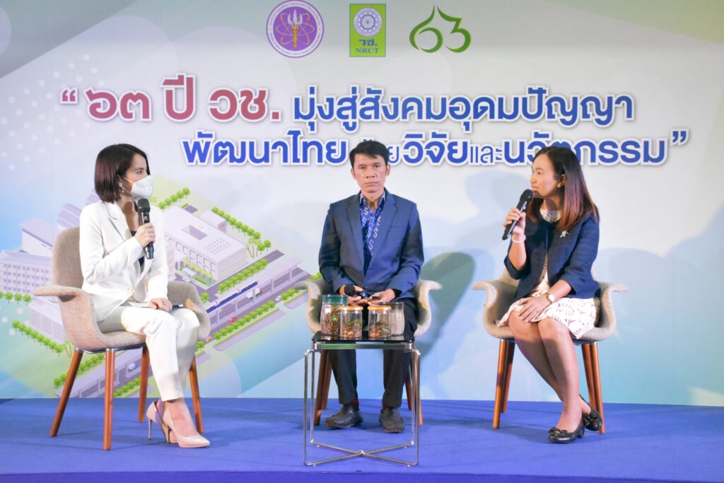 สำหรับเวทีเสวนา NRCT Talk จัดขึ้นในงานวันคล้ายวันสถาปนา (วช.) ครบรอบ 63 ปี เพื่อนำเสนอผลงานวิจัยและนวัตกรรมที่มีศักยภาพจากฝีมือนักวิจัยไทย โดยผลงานวิจัยและนวัตกรรมที่นำมาร่วมเสวนาในเวทีนี้จะร่วมจัดแสดงนิทรรศการ ชิม ช็อป เพลิน เดินตลาดงานวิจัย ซึ่งมีผลงานวิจัยพร้อมใช้ประโยชน์มาจัดแสดงอีกมากมาย โดยจะจัดไปถึงวันที่ 28 ตุลาคม 2565 ณ สำนักงานการวิจัยแห่งชาติ ถนนพหลโยธิน เขตจตุจักร กรุงเทพมหานคร ผู้สนใจสามารถดูรายละเอียดเพิ่มเติมได้ที่ https://63years.nrct.go.th