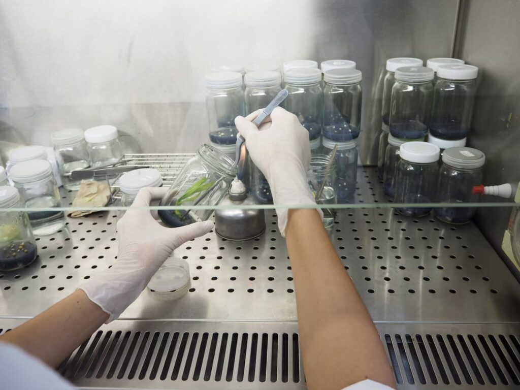 การเพาะเลี้ยงเนื้อเยื่อจึงเป็นทางเลือกในการเพิ่มประสิทธิภาพในการขยายพันธุ์ในอนาคต โดยจะทำให้ได้ต้นพันธุ์มะพร้าวน้ำหอมในปริมาณมาก ปลอดโรค ให้ผลผลิตที่มีคุณภาพตามต้นแม่พันธุ์ และคงอัตลักษณ์มะพร้าวน้ำหอมพันธุ์ก้นจีบ 100 % ช่วยลดอัตราความเสี่ยงของเกษตรกรในเรื่องพันธุ์ที่ไม่แท้
