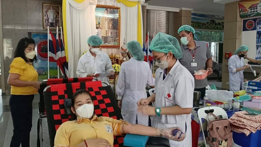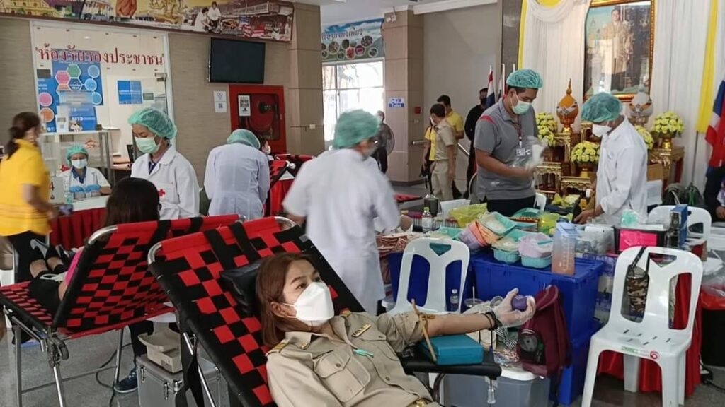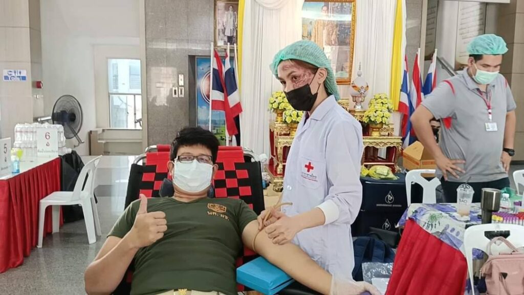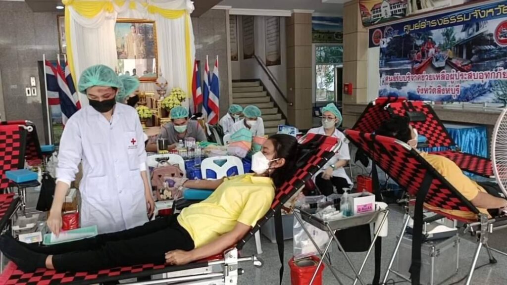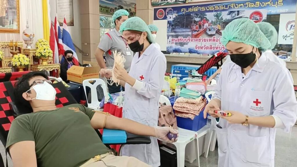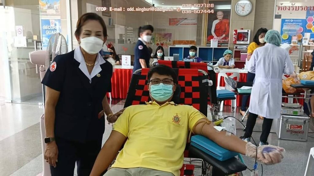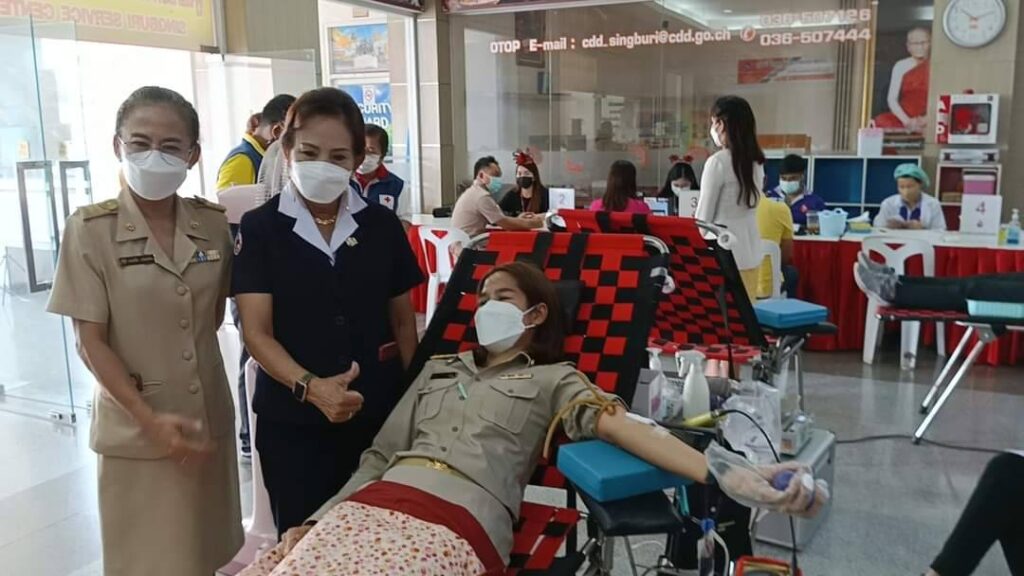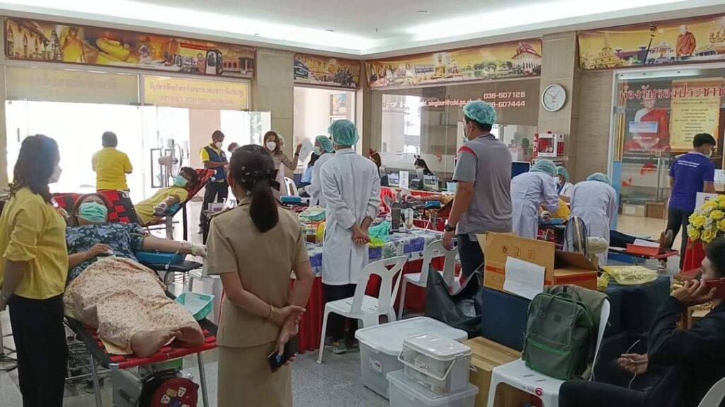 วันที่ 31 ตุลาคม 2565 เวลา 08.30 น. นางสาวนัยนา ศรีเร รองนายกเหล่ากาชาดจังหวัดสิงห์บุรี ร่วมกับภาคบริการโลหิตแห่งชาติที่ 2 จังหวัดลพบุรี จัดกิจกรรมบริจาคโลหิต ในวันปล่อยผีต้อนรับวันฮาโลวีน ในคืนวันที่ 31 ตุลาคมทุกปี ประเทศทางตะวันตกจะจัดงานเฉลิมฉลองวันฮาโลวีน เหล่ากาชาดจังหวัดสิงห์บุรีร่วมกับภาคบริการโลหิตแห่งชาติที่ 2 จังหวัดลพบุรี จึงได้ขานรับนโยบาย ศูนย์บริการโลหิตแห่งชาติ ร่วมจัดกิจกรรมฉลองวันปล่อยผีเทศกาลวันฮาโลวีน โดยชวนคนสุขภาพดีมาให้เลือดกับโครงการ”ฮาโลวีน หนีผีมาให้เลือด” วันที่ 31 ตุลาคม 2565 เวลา 08.30-12.00 น. ณ บริเวณห้องโถง ชั้น 1 ศาลากกลางจังหวัดสิงห์บุรี อาคาร 5 ชั้น เพื่อเป็นกิจกรรมให้ข้าราชการและประชาชนใช้โอกาสในเทศกาลวันสำคัญต่างๆ ร่วมทำกิจกรรม เพื่อสังคมด้วยการบริจาคโลหิต และเป็นการกระตุ้นให้เกิดการบริจาคโลหิตเพิ่มจากปีละ 1 ครั้ง เป็นปีละ 2 ครั้ง จนถึงปีละ 4 ครั้ง และบริจาคโลหิตเป็นประจำทุก 3 เดือนอย่างต่อเนื่อง เพื่อให้มีปริมาณโลหิตสำรองเพียงพอสำหรับผู้ป่วยในโรงพยาบาลทั่วประเทศ โดยเจ้าหน้าที่ภาคบริการโลหิตแห่งชาติที่ 2 จังหวัดลพบุรี แต่งหน้าเป็นผี สร้างสีสันและความประทับใจให้แก่ผู้ที่เดินทางมาบริจาคโลหิตอีกด้วย
