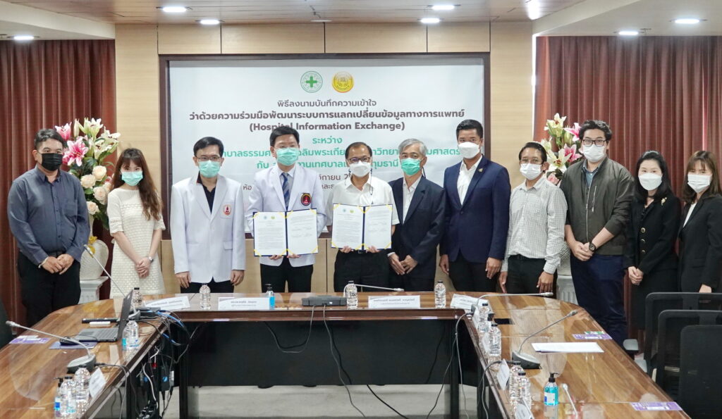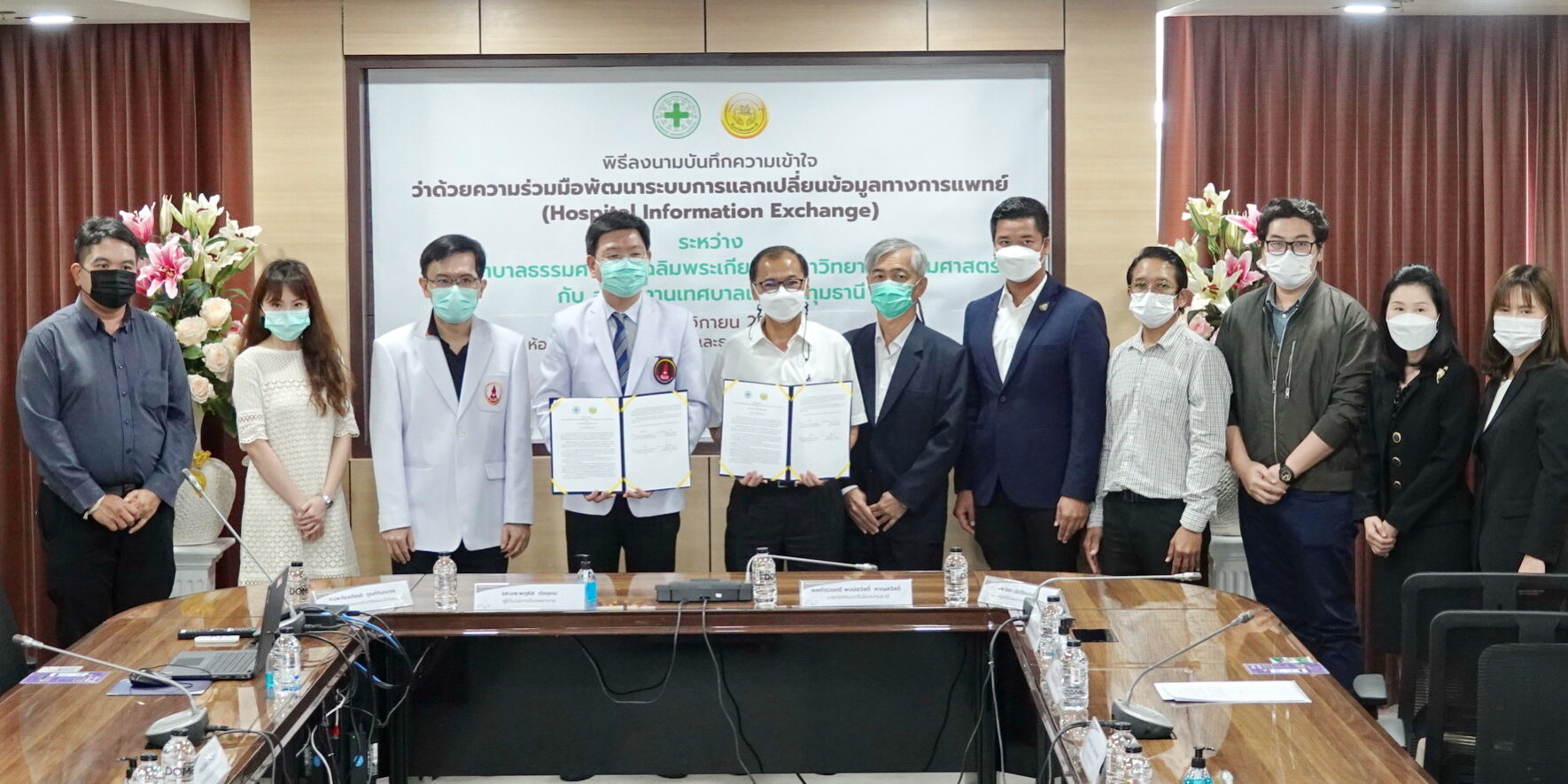 โรงพยาบาลธรรมศาสตร์เฉลิมพระเกียรติ มหาวิทยาลัยธรรมศาสตร์ ร่วมกับสำนักงานเทศบาลเมืองปทุมธานี พัฒนาระบบการแลกเปลี่ยนข้อมูลทางการแพทย์ (HIE : Hospital Information Exchange) มีอายุของบันทึกข้อตกลง 3 ปี สำหรับสาระสำคัญของบันทึกความเข้าใจมีดังนี้ 1. โรงพยาบาลธรรมศาสตร์เฉลิมพระเกียรติ จะมีบทบาทให้การสนับสนุนและอำนวยความสะดวกเพื่อการพัฒนาระบบการแลกเปลี่ยนข้อมูลทางการแพทย์ (HIE) ของประชาชนในเขตเทศบาลเมืองปทุมธานี ซึ่งได้ลงทะเบียนพิสูจน์และยืนยันตัวตน (Identity proofing & Authentication) ด้วยวันซ์ดิจิทัลไอดี (OnesID) โดยนายทะเบียนที่ได้รับการแต่งตั้งจากสานักงานเทศบาลเมืองปทุมธานี 2. สำนักงานเทศบาลเมืองปทุมธานี จะมีบทบาทในการแต่งตั้งนายทะเบียนและลงทะเบียน วันซ์ดิจิทัลไอดี (OnesID) ให้กับประชาชนในเขตเทศบาลเมืองปทุมธานี พร้อมทั้งฝึกอบรมการใช้งานการแลกเปลี่ยนข้อมูลส่วนบุคคลทางการแพทย์ 3. ระบบการแลกเปลี่ยนข้อมูลทางการแพทย์ (HIE) ที่พัฒนาขึ้นนี้ดำเนินการตามพระราชบัญญัติคุ้มครองข้อมูลส่วนบุคคล พ.ศ.2562 และ ข้อเสนอแนะมาตรฐานด้านเทคโนโลยีสารสนเทศและการสื่อสารที่จำเป็นต่อธุรกรรมทางอิเล็กทรอนิกส์ว่าด้วยแนวทางการใช้ดิจิทัลไอดี สำหรับประเทศไทย การลงทะเบียนและพิสูจน์ตัวตน ขมธอ. 19-2561 และการยืนยันตัวตน ขมธอ. 20-2561 ประกาศโดย สำนักงานพัฒนาธุรกรรมทางอิเล็กทรอนิกส์ (องค์การมหาชน) กระทรวงดิจิทัลเพื่อเศรษฐกิจและสังคม วันที่ 28 กันยายน พ.ศ. 2561 และ 4. โรงพยาบาลธรรมศาสตร์เฉลิมพระเกียรติ และสำนักงานเทศบาลเมืองปทุมธานี จะดำเนินงานร่วมกันพัฒนาระบบการแลกเปลี่ยนข้อมูลทางการแพทย์ (HIE) โดยอาจใช้ผู้ที่มีความเชี่ยวชาญจากหลากหลายสถาบันมาร่วมพัฒนา โดยความเห็นชอบทั้งสองฝ่าย