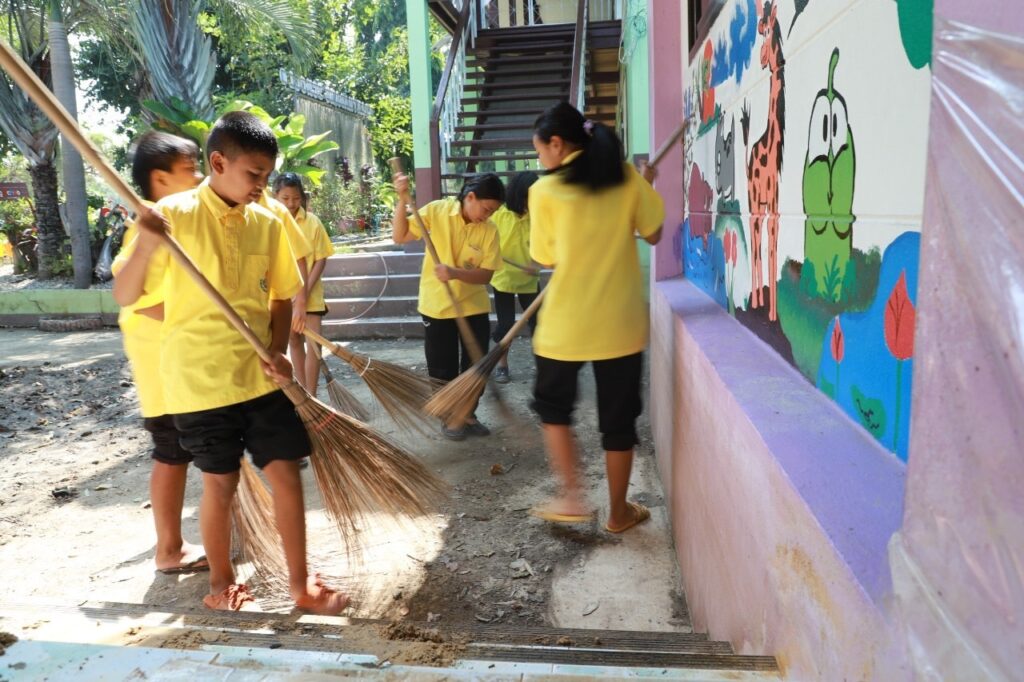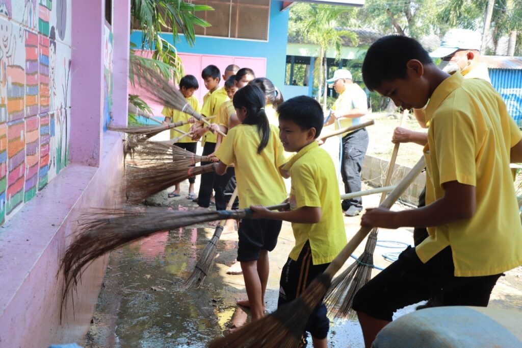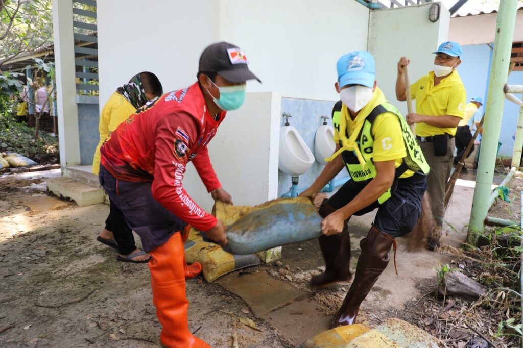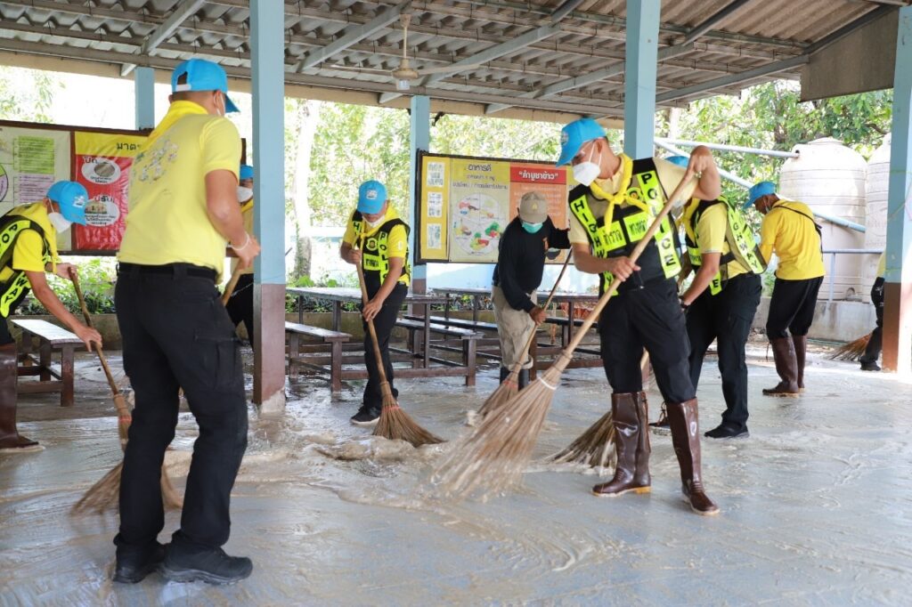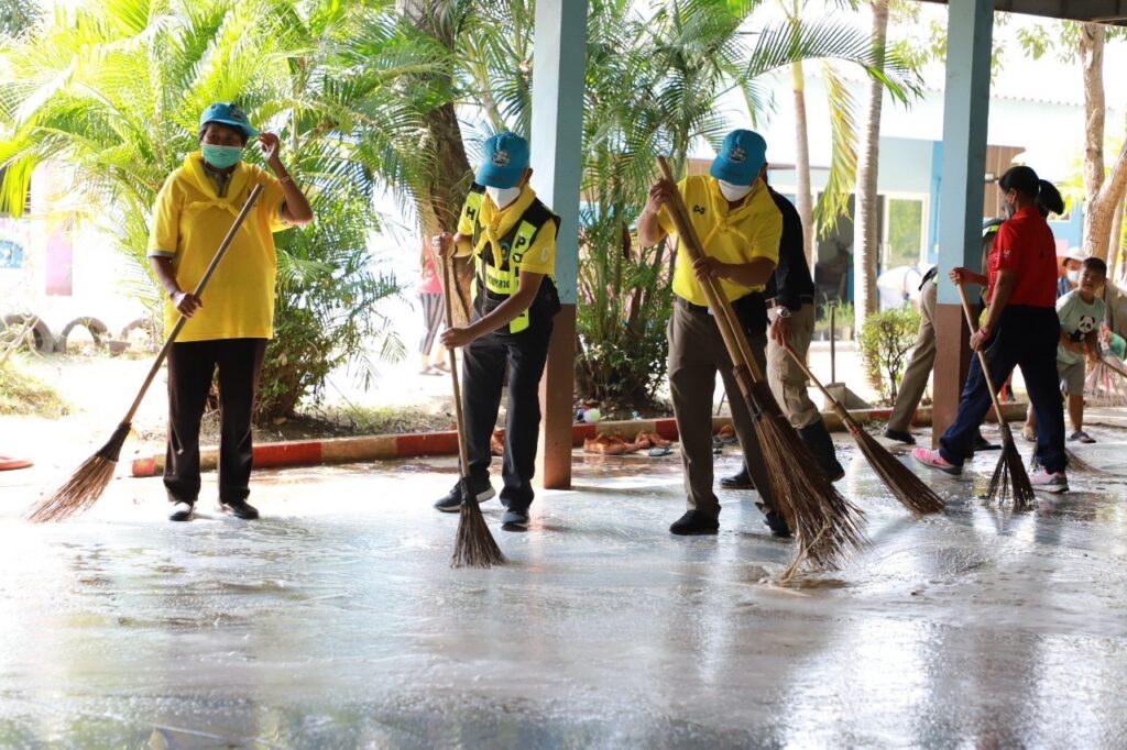 โดยร่วมกันกับฝ่ายปกครองท้องถิ่น ชาวบ้าน และผู้ปกครอง ร่วมทำความสะอาด ภายในโรงเรียนบ้านท่าแดง ภายหลังเกิดน้ำท่วมหนัก ที่ผ่านมา ส่งผลให้ได้รับความเสียหาย โดยเฉพาะห้องเรียน และอาคารเรียน ห้องน้ำ เพื่อเตรียมเปิดเทอมในวันพรุ่งนี้ ภายหลังได้นำกล่องยาสามัญประจำบ้าน ถุงยังชีพ มอบเยียวยาให้ชาวบ้านที่ได้รับผลกระทบน้ำท่วม รวมถึงเลี้ยงไอศกรีม และขนมให้กับเด็กนักเรียน ที่มาร่วมกันทำความสะอาด ในครั้งนี้