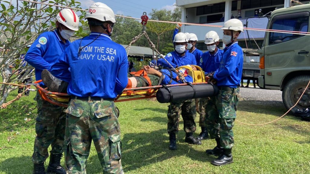 วันนี้ 2 พ.ย.2565 กองพันต่อสู้อากาศยานที่ 22 กรมต่อสู้อากาศยานที่ 2 หน่วยบัญชาการต่อสู้อากาศยานและรักษาฝั่งและกองพันรักษาฝั่งที่ 11 และ กรมรักษาฝังที่ 1 ต.ลำแก่น อ.ท้ายเหมือง จ.พังงา พล.ร.ท.อาภากร อยู่คงแก้วผบ.ทรภ.3 ,นาวาโทศักรินทร์ ซื่อสงวน ผู้บังคับกองพันต่อสู้อากาศยานที่ 22 นาวาโท กัณฑภณ ศุกระรงคะ ผู้บังคับกองพันรักษาฝั่งที่ 11 กรมรักษาฝั่งที่ 1 หน่วยบัญชาการต่อสู้อากาศยานและรักษาฝั่งหน่วยบัญชาการต่อสู้อากาศยานและรักษาฝั่ง ชุดครูฝึกค้นหาและกู้ภัยในเขตเมือง(USAR TEAM)ได้ฝึกการอบรมทั้งภาคทฤษฎี และภาคปฏิบัติฝึกทบทวนและมอบอุปกรณ์ให้กับชุด USAR TEAMเป็นการพัฒนาศักยภาพการกู้ชีพและแนะนำอุปกรณ์บรรเทาสาธารณภัยโดยระบบเชือกขั้นพื้นฐาน และการบำรุงรักษาอุปกรณ์,ระบบบัญชาการณ์เหตุการณ์ และการปฏิบัติงานค้นหาและกู้ภัย,การใช้เปลตะกร้าและเปลSked, การค้นหาและกู้ภัยอย่างรวดเร็ว( ASR3 )การค้นหาทางกายภาพ,เทคนิคการตัดเจาะ,เทคนิคการเคลื่อนย้ายวัตถุหนักออกจากผู้ประสบภัยและการทำระบบเชือกในแบบต่างๆผู้เข้าฝึกในครั้งนี้จำนวน 36 นาย การอบรมครั้งนี้อบรมตั้งแต่วันที่ 28 ต.ค.65 ถึง 1 พ.ย.65รวมเป็นระยะเวลา 5 วันและวันนี้มีการตรวจเยี่ยม ชมการสาธิตต่างๆ และมอบอุปกรณ์ การกู้ภัยให้กับ ชุด USAR TEAM ของกองพันต่อสู้อากาศยานที่ 22 กรมต่อสู้อากาศยานที่ 2 และมีนายโชคชัย เมืองสง หัวหน้าหน่วยป้องกันและปราบปรามประมงทะเลจังหวัดพังาและมีหน่วยงานต่างๆเข้าชม การสาธิตครั้งนี้ด้วย