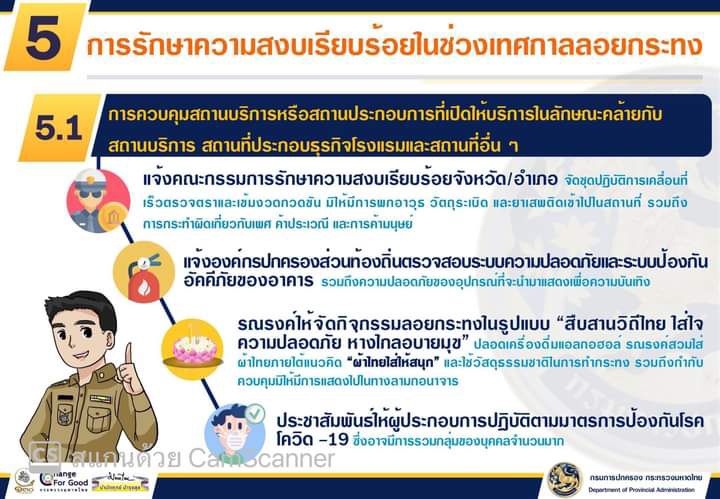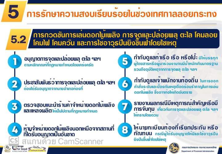 ทั้งนี้สั่งการฝ่ายความมั่นคงอำเภอเมืองลพบุรี กวดขัน ลงพื้นที่ ร้านจำหน่ายอุปกรณ์ดอกไม้เพลิง พลุ ประทัด อย่างเข้มงวด ตลอดจนพื้นที่ขอบเขตการปล่อยโคมลอย ซึ่งอาจเกิดอันตรายเป็นเหตุอัคคีภัยได้ พร้อมนำชุดเคลื่อนที่เร็วลงพื้นที่ดูแลความสงบเรียบร้อยในสถานที่เสี่ยงภัยต่างๆ ที่อาจเป็นอันตรายต่อประชาชนได้ ตลอดจนประชาสัมพันธ์สร้างการรับรู้ให้ประชาชน ทราบถึงมาตรการความปลอดภัย และร่วมแสดงออกในการประพฤติปฏิบัติตามแบบวัฒนธรรมอันดีงามแห่งท้องถิ่นและร่วมกันลอยกระทงตามประเพณีไทยต่อไป