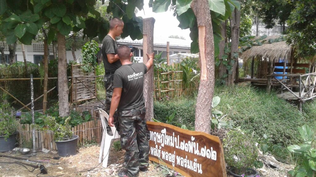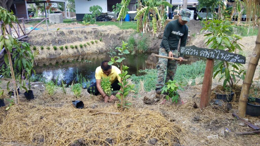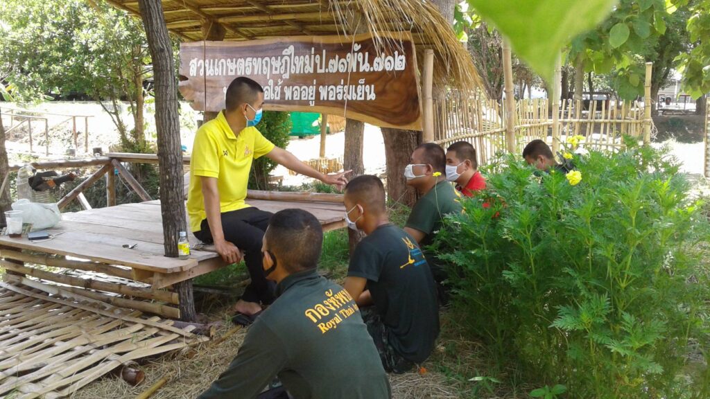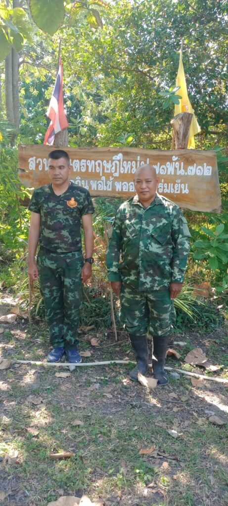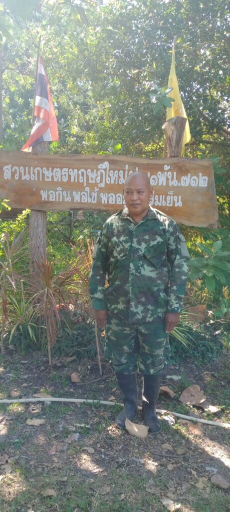 เริ่มทำสวนตั้งแต่ปี 63 มีผู้รับผิดชอบ 2 นายคือ 1 ร.ท. สยุมภู ลาวงษา 2 จ.ส.อ. วิชัย สีดา เป็นพื้นที่ว่างเปล่ากองทัพบกมีคำสั่งด่วนให้ทำสวนเศษฐกิจพอเพียงของรัชกาลที่ 9 ส่วนพืชที่ปลูก 1. สวนกล้วย 2. สวนมะนาว 3 ปลูกผักสวนครัว เช่น พริก กระเพาะ โหรพา มะละกอ เป็นต้น นอกจากผักแล้วเราทำการเลี้ยงปลา เช่น ปลานิล ปลาทับทิม ปลาดุก ปลาช่อน สิ่งที่สำคัญที่จะมีภายภาคหน้า คือ โครงการอาชาบำบัดร่วมกับกองทัพบกตอนนี้ขาดแคลนเรื่องม้าใครที่มีม้าแต่ปลดระวางแล้วขอเชิญร่วมบริจาคมาทาง ร.ท. สยุมภู ลาวงษา เบอร์โทร 0851855738