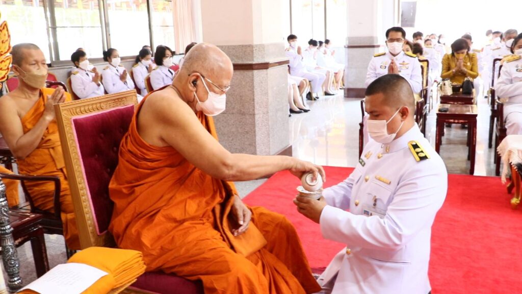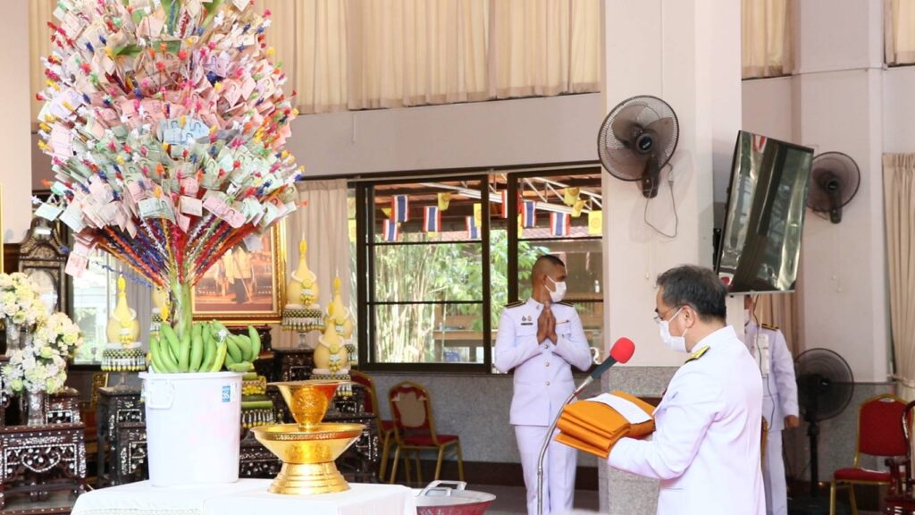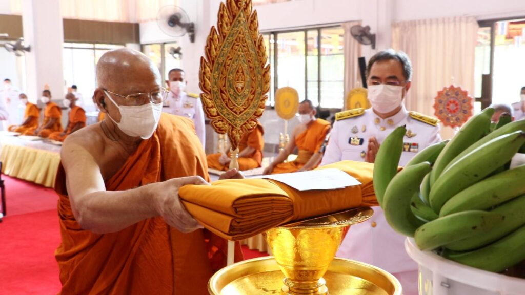 สำหรับพิธีเริ่มด้วยประธานจุดธูปเทียนเครื่องนมัสการบูชาพระรัตนตรัย ถวายความเคารพ เบื้องหน้าพระบรมฉายาลักษณ์ พระบาทสมเด็จพระบรมชนกาธิเบศร มหาภูมิพลอดุลยเดชมหาราช บรมนาถบพิตรถวายความเคารพเบื้องหน้าพระบรมฉายาลักษณ์ พระบาทสมเด็จพระเจ้าอยู่หัว เปิดกรวยกระทงดอกไม้รูปเทียนแพ เบื้องหน้าพระบรมลายาลักษณ์ ยกผ้าไตรพระราชทานจากพานแว่นฟ้า เชิญผ้าไตรพระราชทานไปที่ต้นผ้าป่าจากนั้นพระสงฆ์พิจารณาผ้าป่า ประธานจุดธูปเทียนเครื่องทองน้อยเบื้องหน้าพระบรมฉายาลักษณ์พระบาทสมเด็จพระบรมชนกาธิเบศร มหาภูมิพลอดุลยเดชมหาราช บรมนาถบพิตร และทอดผ้าไตร 10 ไตรทั้งนี้ ยอดถวายการทำบุญพิธีทอดผ้าป่าสนับสนุนโครงการทุนเล่าเรียนหลวง สำหรับพระสงฆ์ไทย จังหวัดสิงห์บุรี โดยจังหวัดสิงห์บุรีร่วมกับคณะสงฆ์จังหวัดสิงห์บุรี รวมเป็นเงิน จำนวน 297,830 บาท ผู้มีจิตศรัทธายังคงสามารถร่วมบุญร่วมกุศลได้ไปจนถึง 15 พ.ย.2565