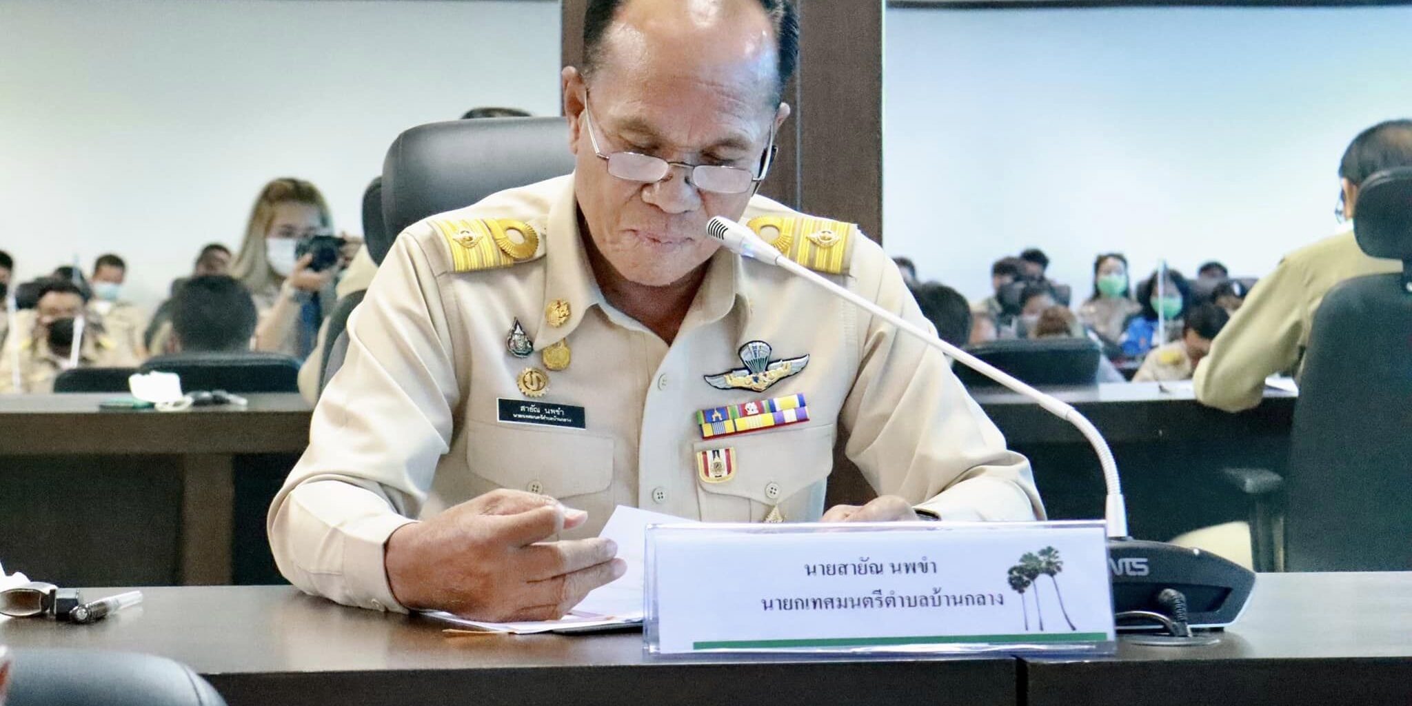 นายณรงค์ศักดิ์ โอสถธนากร ผวจ.ปทุมธานี ได้ลงนามเซ็นคำสั่งในหนังสือ คำสั่งจังหวัดปทุมธานีฯ ให้นายกเทศมนตรีตำบลบ้านกลางพ้นจากตำแหน่งโดยหนังสือลงวันที่ 31 ตุลาคม 2565 มีเนื้อหาทั้งหมด 14 หน้ากระดาษ ระบุ สืบเนื่องมาจาก จังหวัดปทุมธานี ได้รับแจ้งจากกระทรวงมหาดไทยว่า สำนักงาน ป.ป.ช. ได้มีหนังสือถึง รัฐมนตรีว่าการกระทรวงมหาดไทย แจ้งว่า คณะกรรมการ ป.ป.ช.ได้รับเรื่องกล่าวหานายสายัณ นพขำ นายกเทศมนตรีตำบลบ้านกลาง และเมื่อครั้งดำรงตำแหน่งนายกองค์การบริหารส่วนตำบลบ้านกลาง อำเภอเมืองปทุมธานี จังหวัดปทุมธานี ได้ร่วมกับพวกกระทำความผิดฐานทุจริตต่อหน้าที่ หรือกระทำความผิดต่อตำแหน่งหน้าที่ราชการ หลายกรณี กำหนดราคา ขายเอกสารประกวดราคาโครงการก่อสร้างถนนลูกรังและวางท่อระบายน้ำพร้อมบ่อพัก หมู่บ้านมณีรินทร์ หมู่ที่ 1 และโครงการก่อสร้างปรับปรุงยกระดับ ซ่อมแซมถนน และวางท่อระบายน้ำอื่นๆ อีก 7 โครงการ สูงกว่าความเป็นจริง เพื่อเอื้อประโยชน์ให้กับผู้เสนอราคาบางราย กรณีเมื่อครั้งดำรงตำแหน่งนายกองค์การบริหารส่วนตำบลบ้านกลาง ประกอบด้วย (1) โครงการก่อสร้างถนนลูกรัง และวางท่อระบายน้ำพร้อมบ่อพัก หมู่บ้านมณีรินทร์ หมู่ที่ 1 (2) โครงการก่อสร้างยกระดับถนนแอสฟัลท์ติกคอนกรีต บริเวณซอยมิตรบ้านกลาง หมู่ที่ 2 (3) โครงการปรับปรุงก่อสร้างถนนลาดยางแอสฟัลท์ติกคอนกรีต บริเวณเลียบคลองประปา หมู่ที่ 1 และเมื่อครั้งดำรงตำแหน่งนายกเทศมนตรีตำบลบ้านกลาง ประกอบด้วย (1) โครงการปรับปรุงซ่อมแซมถนนคอนกรีตเสริมเหล็กพร้อมวางท่อระบายน้ำ (2) โครงการปรับปรุงซ่อมแซมถนนแอสฟัลท์ติกคอนกรีต (3) โครงการปรับปรุงซ่อมแซมถนนคอนกรีตเสริมเหล็กผิวจราจรพร้อมรางวี ถนนจัดสรรกรมการปกครอง หมู่ที่ 2 (4) โครงการปรับปรุงซ่อมแซมถนนคอนกรีตเสริมเหล็กพร้อมรางวี และ (5) โครงการวางท่อระบายน้ำพร้อมรางวี บริเวณคลองสะพาน-หน้าอนามัย หมู่ที่ 3 ซึ่งคณะกรรมการ ป.ป.ช.ได้รับไว้พิจารณา