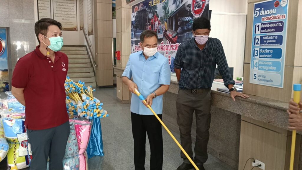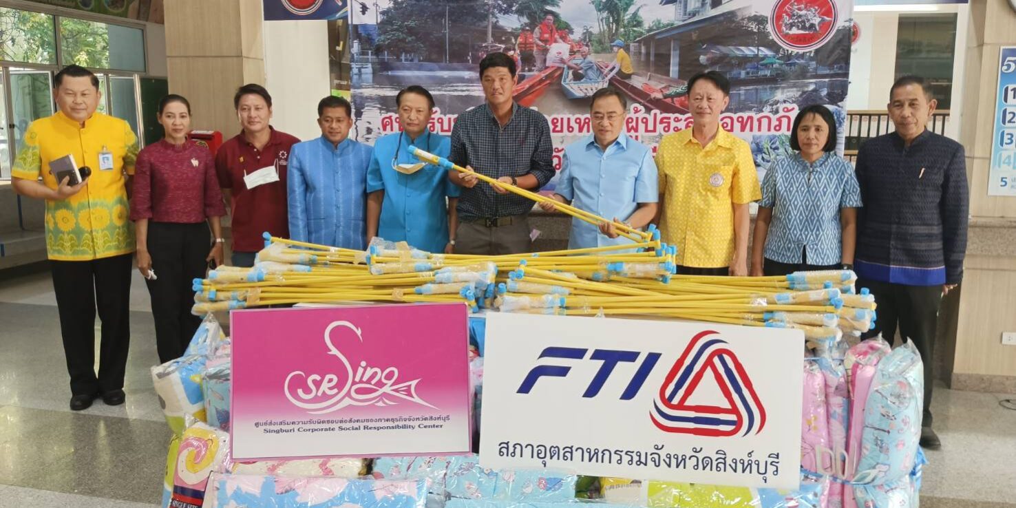 นายวิจิตร เลิศไพบูลย์วงศ์ ประธานสภาอุตสาหกรรมจังหวัดสิงห์บุรี นายศราวุฒิ ชนะถาวราลักษณ์รองกรรมการผู้จัดการ บริษัทสิงห์บุรีอีซูซุเซลส์ จำกัด ร่วมกับนายดุสิต สุขสวัสดิ์ อาจารย์ประจำภาควิชาวิศวกรรมภาคไฟฟ้า สถาบันเทคโนโลยีพระจอมเกล้าเจ้าคุณทหารลาดกระบัง (สจล.) มอบไม้วัดไฟรั่วจำนวน 100 ชิ้น และผ้าห่มกันหนาวจำนวน 25 ผืน ให้กับ นายสุพจน์ ยศสิงห์คำ ผู้ว่าราชการจังหวัดสิงห์บุรี ประธานศูนย์ช่วยเหลือผู้ประสบอุทกภัยจังหวัดสิงห์บุรี สำหรับใช้ตรวจสอบไฟรั่วในพื้นที่ประสบภัยน้ำท่วม และผ้าห่มกันหนาวสำหรับผู้พักอาศัยกลางเต็นท์ชั่วคราว โดยมีนายสัมฤทธิ์ กองเงิน พร้อมนายสมชาย ลีหล้าน้อย รองผู้ว่าราชการจังหวัดสิงห์บุรี ปลัดจังหวัดสิงห์บุรี และหัวหน้าส่วนราชการจังหวัดสิงห์บุรี ร่วมรับมอบสิ่งของช่วยเหลือผู้ประสบภัยอุทกภัย ณ ศาลากลางจังหวัดสิงห์บุรีหลังใหม่