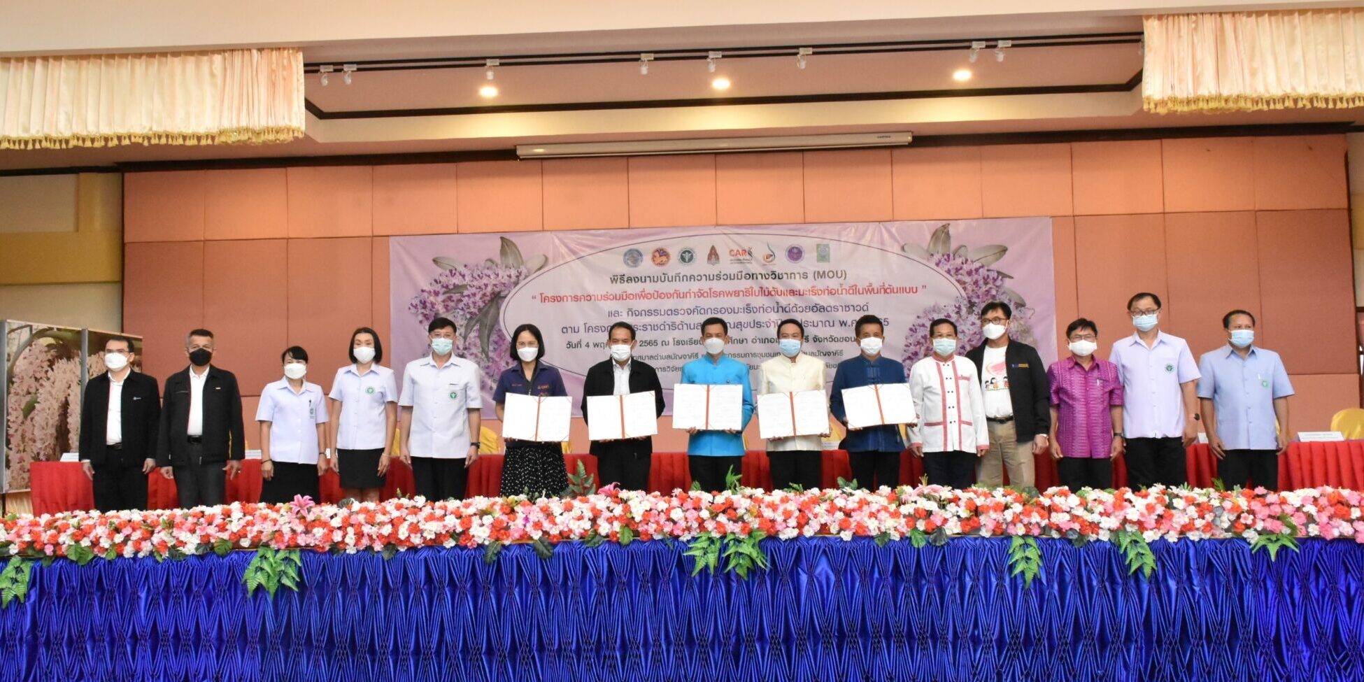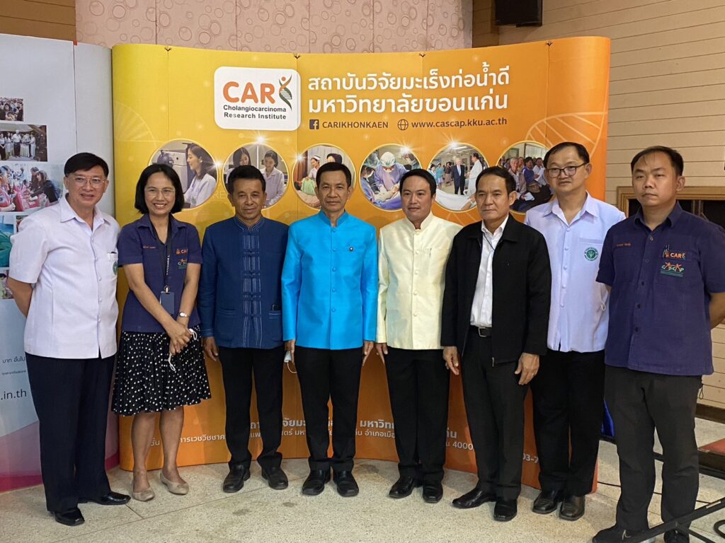 สำนักงานการวิจัยแห่งชาติ (วช.) นำโดย นายเอนก บำรุงกิจ รองผู้อำนวยการสำนักงานการวิจัยแห่งชาติ ร่วมกับสถาบันวิจัยมะเร็งท่อน้ำดี มหาวิทยาลัยขอนแก่น นำโดย รศ.ดร.วัชรินทร์ ลอยลม กรรมการและเลขานุการสถาบันวิจัยมะเร็งท่อน้ำดี เทศบาลตำบลมัญจาคีรี นำโดย นายธีระยุทธ ต้องสู้ คณะกรรมการพัฒนาคุณภาพชีวิตอำเภอมัญจาคีรี นำโดย นายกานต์ ทองเสน ปลัดอำเภอ หัวหน้ากลุ่มงานบริหารงานปกครอง และคณะกรรมการพัฒนาคุณภาพชีวิตอำเภอหนองเรือ นำโดย นายพิชิต แสนเสนา พร้อมหน่วยงานที่มีส่วนเกี่ยวข้องต่างๆ ได้แก่ สำนักงานหลักประกันสุขภาพแห่งชาติ เขต 7 ขอนแก่น คณะกรรมการเขตสุขภาพเพื่อประชาชน เขตพื้นที่ 7 สำนักงานป้องกันควบคุมโรคที่ 7 ขอนแก่น ศูนย์อนามัยที่ 7 ขอนแก่น ศูนย์วิทยาศาสตร์การแพทย์ที่ 7 ขอนแก่น สาธารณสุขจังหวัดขอนแก่น โรงพยาบาลมัญจาคีรี และมูลนิธิมะเร็งท่อน้ำดี ได้ร่วมลงนามความร่วมมือทางวิชาการ (MOU) “ความร่วมมือเพื่อป้องกันและกำจัดโรคพยาธิใบไม้ตับและมะเร็งท่อน้ำดีในพื้นที่ต้นแบบ” ณ หอประชุมโรงเรียนมัญจาศึกษา อ.มัญจาคีรี จ.ขอนแก่น โดยได้รับเกียรติจากนายพันธ์เทพ เสาโกศล รองผู้ว่าราชการจังหวัดขอนแก่น เป็นประธานในพิธีบันทึกความเข้าใจความร่วมมือทางวิชาการ (MOU) ดังกล่าว โดยมีเป้าหมายในการสร้างความร่วมมือการพัฒนาและขับเคลื่อนต้นแบบในการแก้ไขปัญหาโรคพยาธิใบไม้ตับและมะเร็งท่อน้ำดีอย่างครบวงจรอย่างยั่งยืน ผ่านคณะกรรมการพัฒนาคุณภาพชีวิตระดับอำเภอ และองค์กรปกครองส่วนท้องถิ่น ด้วยการรณรงค์และสร้างความตระหนักในปัญหาตรวจคัดกรองพยาธิใบไม้ตับและมะเร็งท่อน้ำดี ส่งเสริมการนำหลักสูตรเสริมสร้างภูมิคุ้มกันโรคพยาธิใบไม้ตับและมะเร็งท่อนํ้าดีไปใช้ในโรงเรียน ขับเคลื่อนการพัฒนาระบบการจัดการสิ่งปฏิกูลเพื่อการตัดวงจรพยาธิใบไม้ตับ พัฒนาเครือข่ายอาหารปลอดภัย : ปลาปลอดพยาธิใบไม้ตับ และพัฒนาศักยภาพของบุคลากรทางสาธารณสุขร่วมกัน