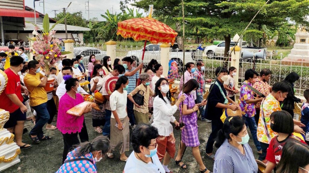 เมื่อวันที่ 6 พ.ย.65 : ที่ศาลาการเปรียญ วัดนากระรอก ต.ทุ่งขวาง อ.พนัสนิคม จ.ชลบุรี ได้มีพิธีถวายผ้ากฐินและทอดผ้าป่าสามัคคี ประจำปี 2565 โดยมีคุณแม่ละมูล เกโส คุณเอมอร จินดาธนาวัฒน์ เจ้าของร้านเฮงดี หูฉลาม เยาวราช เป็นเจ้าภาพทอดกฐินสามัคคีมหากุศล พร้อมบุญอย่างคับคั่ง