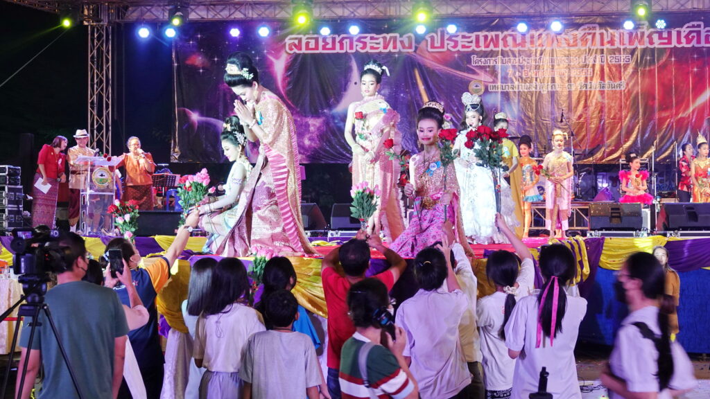 บรรยากาศสีสันในงานลอยกระทงวันแรกมีการประกวดหนูน้อยนพมาศ โดยเด็กเยาวชนในชุดไทยเข้าประกวดหนูน้อยนพมาศ แบ่งเป็น 2 ประเภท ได้แก่ ระหว่างอายุ 5 -7 ปี จำนวน 9 คน และอายุ 8-12 ปี จำนวน 13 คน มีการแสดงความสามารถพิเศษของเด็ก ๆ มีทั้งการร้องเพลง การเต้นประกอบดนตรี ร้องลิเก ยิมนาสติก สร้างสีสันในคืนก่อนวันลอยกระทง ในส่วนของรางวัลผู้ชนะเลิศจะด้ายสะพายพร้อมเงินรางวัล 10,000 บาท ส่วนรางวัลที่ 2 ได้เงินรางวัลจำนวน 8,000 บาท , รางวัลที่ 3 ได้เงินรางวัลจำนวน 7,000 บาท , รางวัลที่ 4 ได้เงินรางวัลจำนวน 6,000 บาท , รางวัลที่ 5 ได้เงินรางวัลจำนวน 5,000 บาท ส่วนรางวัลขวัญใจมหาชนที่วัดจากจำนวนดอกไม้ที่ได้จากประชาชนที่มาร่วมชมการประกวด จะได้รับเงินรางวัล 4,000 บาท ในส่วนของทางวัดพระได้ทำกระทงไว้ให้ประชาชนทั่วไปได้ซื้อไปลอยกระทง เพื่อนำปัจจัยที่ได้ไปบูรณะวัด