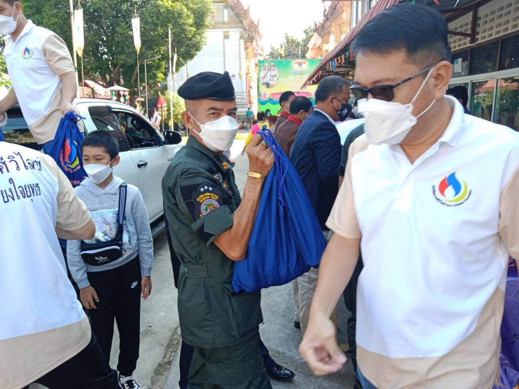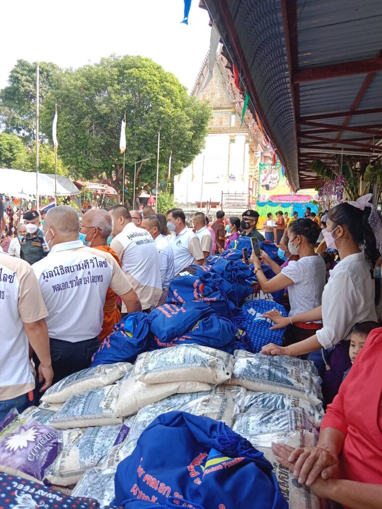 นำถุงยังชีพ ข้าววสารอาหารแห้งมาแจกผู้มาร่วมงาน ณ วัดสระประทุม ต.ทองหลาง อ.บ้านใหม่ไชยพจน์ จ.บุรีรัมย์ เพื่อ ” บูรณะปฏิสังขรณ์พระอุโบสถ “