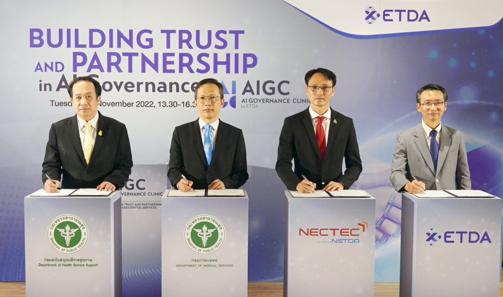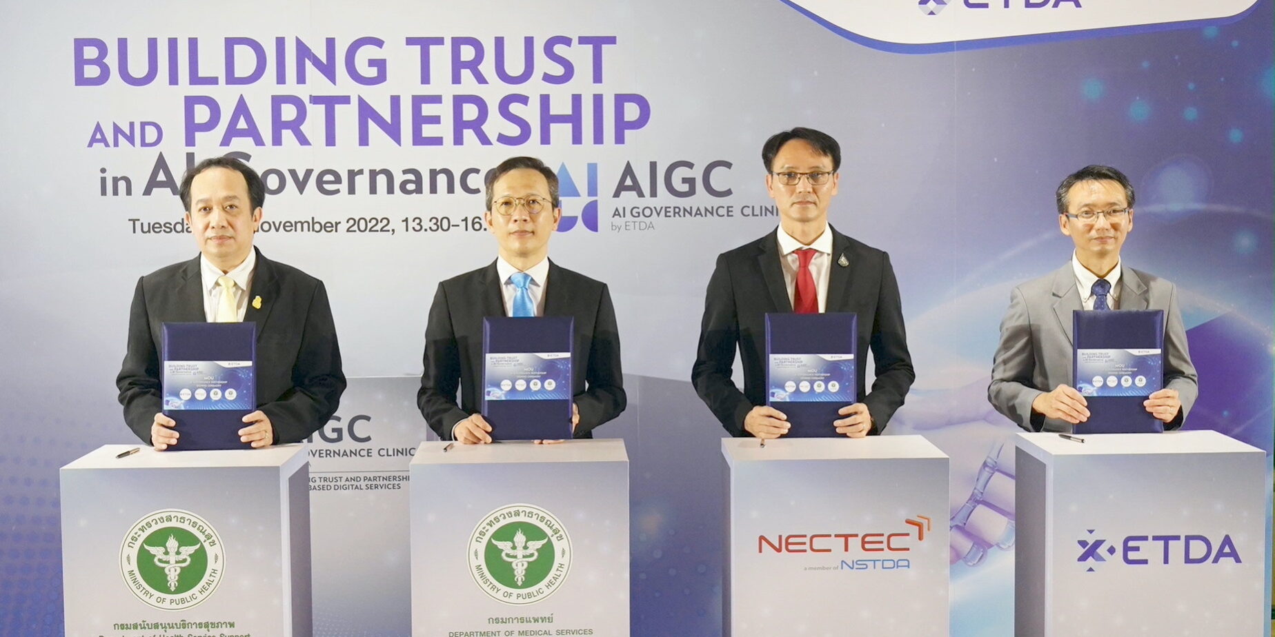 สำนักงานพัฒนาธุรกรรมทางอิเล็กทรอนิกส์ (สพธอ.) หรือ ETDA (เอ็ตด้า) พร้อม พาร์ทเนอร์ทั้งไทยและต่างประเทศ จัดใหญ่เปิดตัว “ศูนย์ธรรมาภิบาลปัญญาประดิษฐ์ หรือ AI Governance Clinic by ETDA (AIGC)” ลุยยกระดับมาตรฐานด้านปัญญาประดิษฐ์ (AI Governance) ดันประเทศประยุกต์ใช้ AI อย่างมีความรับผิดชอบ ประเดิมจับมือ “เนคเทค-กรมการแพทย์-กรมสนับสนุนบริการสุขภาพ” เพื่อเร่งพัฒนากรอบ ข้อเสนอแนะ และกระจายความรู้เกี่ยวกับธรรมาภิบาลการใช้ AI สำหรับทางการแพทย์