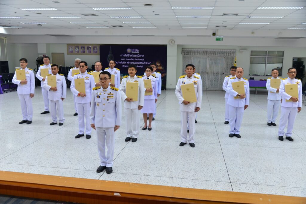 วันที่ 8 พฤศจิกายน 2565 นายสงกรานต์ ชุติธนธีระกุล ผู้ช่วยผู้ว่าการการไฟฟ้าส่วนภูมิภาค เขต 3 (ภาคเหนือ) จ.ลพบุรี เป็นประธานในพิธีมอบเครื่องหมาย”รักษาดินแดนยิ่งชีพ” หน้าพระบรมฉายาลักษณ์ พระบาทสมเด็จพระบรมชนกาธิเบศร มหาภูมิพลอดุลยเดชมหาราช บรมนาถบพิตร แก่ผู้ทำคุณประโยชน์ต่อกิจการกองอาสารักษาดินแดนและประเทศชาติเป็นส่วนรวม ให้แก่ นายจรูญศักดิ์ นาคคล้าม ผอ.ฝ่ายปฏิบัติการและบำรุงรักษา นายธรรมนูญ สุวรรณพฤกษ์ ผอ.ฝ่ายบัญชีและพลังงานไฟฟ้า และนายปริญญา เชื้อปรางค์ ผอ.ฝ่ายวิศวกรรมและบริการ เพื่อเป็นเป็นการยกย่องเชิดชูเกียรติต่อผู้ที่ทำคุณประโยชน์ต่อกิจการกองอาสารักษาดินแดน โดยมี น.ส.ธาดา ดิษฐ์สุวรรณ ผอ.กองอำนวยการฯกล่าวรายงานการมอบเครื่องหมาย”รักษาดินแดนยิ่งชีพ” ห้องประชุม ชั้น 8 อาคาร 1 สำนักงานการไฟฟ้าส่วนภูมิภาค เขต 3 (ภาคเหนือ) จ.ลพบุรี