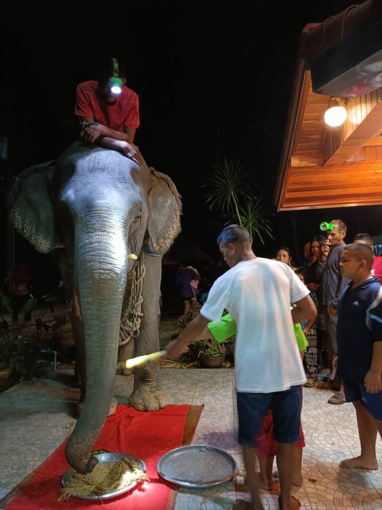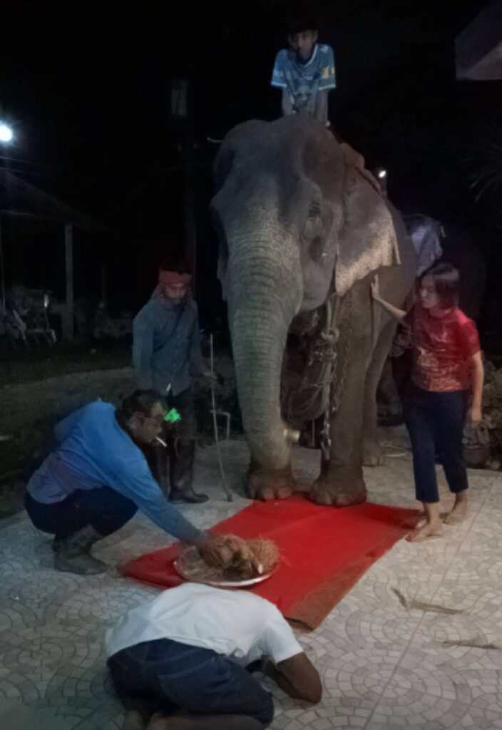 ทั้งนี้ก่อนทอดกฐินทางเจ้าภาพได้ทำพิธีช้างเหยียบเริน(เป็นพิธีกรรมของคนสมัยโบราน)โดยทางเจ้าของบ้านนั่งคุกเข่าและขอพรจากช้างและปูผ้าสีแดงแล้วเอาข้าวใส่ในถาดให้ช้างกินและลอดท้องช้างเพื่อความเป็นสิริมงคลแก่ชีวิตและคนในครอบครัวอีกด้วย