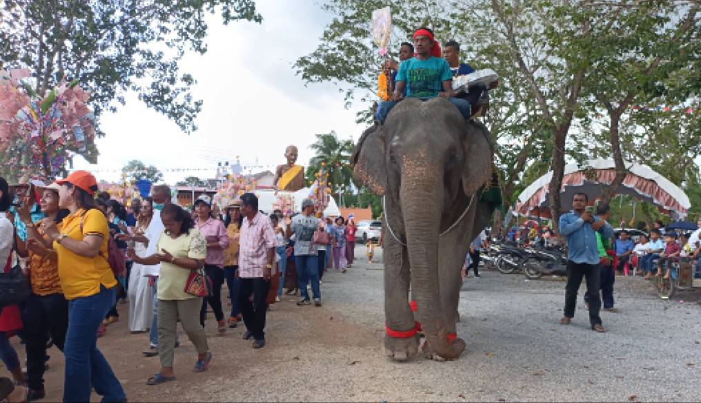 วันนี้ 9พ.ย.65 เมื่อวันที่ 8 พ.ย.65ที่ผ่านมา ที่ วัดควนเพ็ง ตำบลโคกทราย อำเภอป่าบอน จังหวัดพัทลุง คุณพ่อเขตและคุณแม่คิด แก้วเขียว หจก.เกตฟาร์มไก่ บ้านห้วยเรือ เป็นประธานทอดกฐินสามัคคี พร้อมด้วยญาตพี่น้อง บ้านห้วยเรือ ตำบลหารเทา อำเภอปากพะยูน จังหวัดพัทลุง และชาวบ้านในพื้นที่ร่วมกันจัดพิธีทอดกฐินสามัคคีประจำปีขึ้น ซึ่งกฐินสามัคคีในปีนี้ถือเป็นการจัดขบวนแห่สุดอลังการ โดยการแห่กฐินสามัคคีพร้อมด้วยประชาชนชนที่เดินทางมาร่วมบุญ และมีช้างจำนวน 2 เชือก ที่ทางเจ้าภาพกองกฐินได้นำมาสร้างสีสันเรียกเสียงฮือฮา ร่วมขบวนแห่ต้นบุญกฐิน พร้อมเครื่องบริวาร เป็นขบวนยาวเหยียด ซึ่งชาวบ้านในพื้นที่เชื่อว่า การนำช้างมาร่วมขบวนแห่ต้นบุญกฐินในครั้งนี้ นับว่าเป็นการจัดงานแห่บุญกฐินที่ยิ่งใหญ่ที่สุดของที่นี้ ซึ่งเจ้าภาพทำบุญทอดกฐินได้นั่งช้างไปทอดกฐิน ก็จะทำให้ได้บุญได้กุศลยิ่งใหญ่ขึ้นด้วย โดยมียอดถวายกฐินรวมเป็นเงิน จำนวน 954,764 บาท