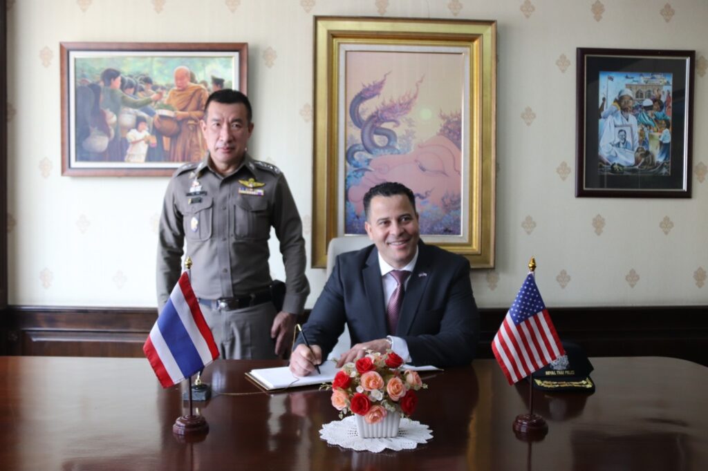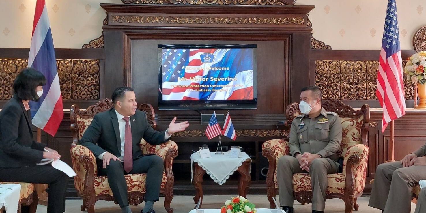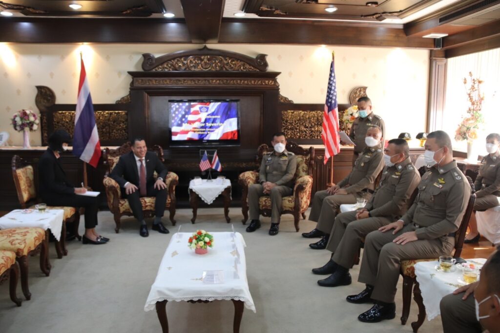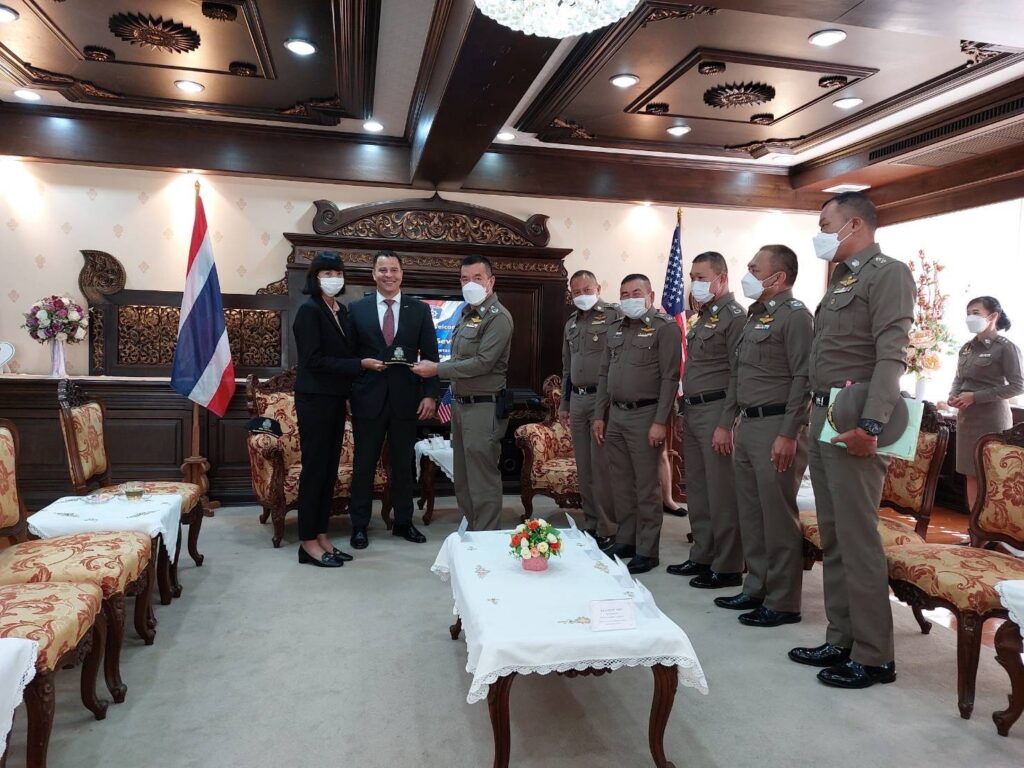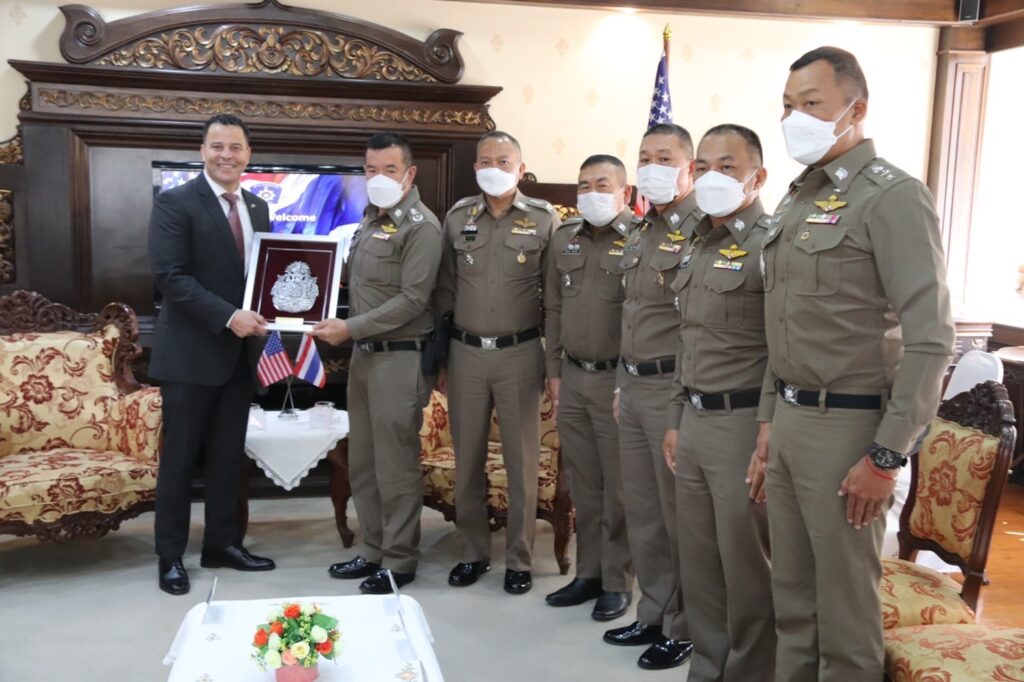 พล.ต.ท.ปิยะ ต๊ะวิชัย ผบช.ภ.5 พร้อมด้วย พล.ต.ต.กฤตธาพล ยี่สาคร รอง ผบช.ภ.5, พล.ต.ต.เฉลิมพล จินตรัตน์ รอง ผบช.ภ.5, พล.ต.ต.พิเชษฐ จีระนันตสิน รอง ผบช.ภ.5, พล.ต.ต.มานพ เสนากูล ผบก.อก.ภ.5 และพ.ต.อ.ศุภฤกษ์ ยอดคำ รอง ผบก.สส.ภ.5 ให้การต้อนรับ MR.Victor Severino รองผู้ช่วยทูต หน่วยป้องกันกองกำลัง สถานเอกอัครราชทูตสหรัฐอเมริกา ประจำประเทศไทย และคณะ เนื่องในโอกาสที่ MR.Victor Severino เข้าพบเพื่อนำเรียนเกี่ยวกับภารกิจของหน่วยป้องกันกองกำลัง และหารือเพี่อเตรียมความพร้อมการฝึกร่วมระหว่างตำรวจภูธรภาค 5 และเจ้าหน้าที่สหรัฐอเมริกา ซึ่งจะจัดขึ้นในพี้นที่จังหวัดเชียงใหม่ในอนาคตอันใกล้นี้ พร้อมกันนี้ พล.ต.ท.ปิยะ ต๊ะวิชัย ได้มอบของที่ระลึกให้กับ MR.Victor Severino และคณะเพื่อเป็นการแสดงไมตรีอันดีที่มีต่อกัน ณ ห้องรับรอง ตำรวจภูธรภาค5 อ.เมือง จว.เชียงใหม่