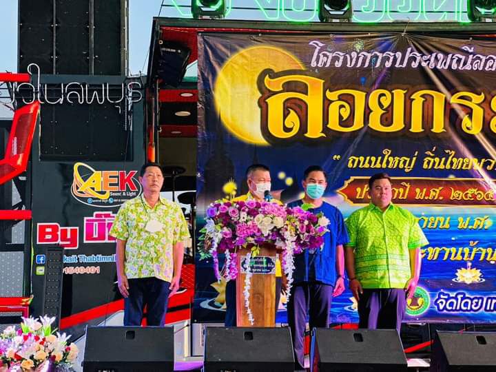 ว่าที่ร้อยตรีทรงพล แป้นแก้ว นายอำเภอเมือง จังหวัดลพบุรี เป็นประธานพิธีเปิดงานโครงการประเพณีลอยกระทงประจำปี ๒๕๖๕ โดยมี นายรัชพล เกียรติวินัยสกุล นายกเทศมนตรีตำบลถนนใหญ่คณะผู้บริหารเทศบาลตำบลถนนใหญ่ คณะสมาชิกสภาเทศบาลเทศบาลตำบลถนนใหญ่ หัวหน้าส่วนราชการพนักงานเทศบาล และประชาชนชาวตำบลถนนใหญ่และพื้นที่ใกล้เคียง ร่วมให้การต้อนรับ ร่วมในพิธีเปิดงานโครงการประเพณีลอยกระทง ประจำปี ๒๕๖๕ โดย นายรัชพล เกียรติ วินัยสกุล นายกเทศมนตรีตำบลถนนใหญ่ เป็นผู้กล่าววัตถุประสงค์ในการจัดงาน