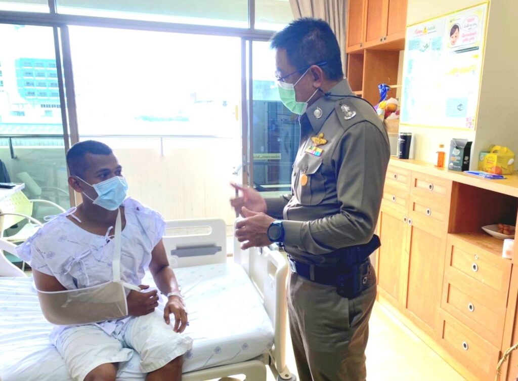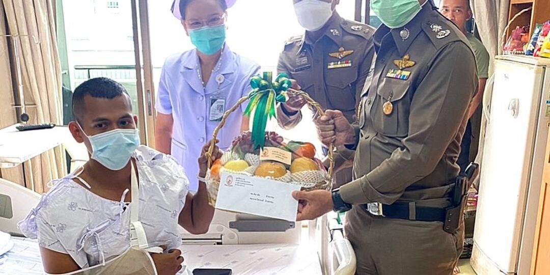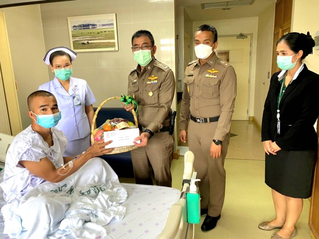 วันที่ 10 พ.ย.65 เวลา 10.30 น. : “มูลนิธิพระราหู” โดย ดร.หิมาลัย ผิวพรรณ ประธานที่ปรึกษามูลนิธิฯ และ พล.ต.ท.ไตรรงค์ ผิวพรรณ ผู้บัญชาการสำนักงานกฎหมายและคดี (ผบช. กมค.) มอบหมายให้ พล.ต.ต.อาชาน จันทร์ศิริ ผบก.กค.ภ.9 พร้อมด้วย พ.ต.ท.พัฒนชัย ปาละสุวรรณ รอง ผกก.(กลุ่มงานสอบสวน) บก.ภ.จ.สงขลาเป็นผู้แทนในนาม “มูลนิธิพระราหู” เข้าเยี่ยมและให้กำลังใจ จ.ส.ต.อนุพล มะลิ ผบ.หมู่ (ป.)กก.ปพ.ภ.9 และส.ต.อ.เจษฏา ธนาวุฒิ ผบ.หมู่ (ป.) ไปกก.ปพ.ภ.9 ได้พักรักษาตัวที่ตึกเฉลิมพระบารมี โรงพยาบาลสงขลานครินทร์ อ.หาดใหญ่ จ.สงขลา ซึ่งได้รับบาดเจ็บจากการปฏิบัติหน้าที่ เหตุปิดล้อม หมู่ที่ 7 ต.ดอนรัก อ.หนองจิก จ.ปัตตานี เมื่อวันที่ 7 พ.ย.65 ในพื้นที่ สภ.ตุยง จ.ปัตตานี