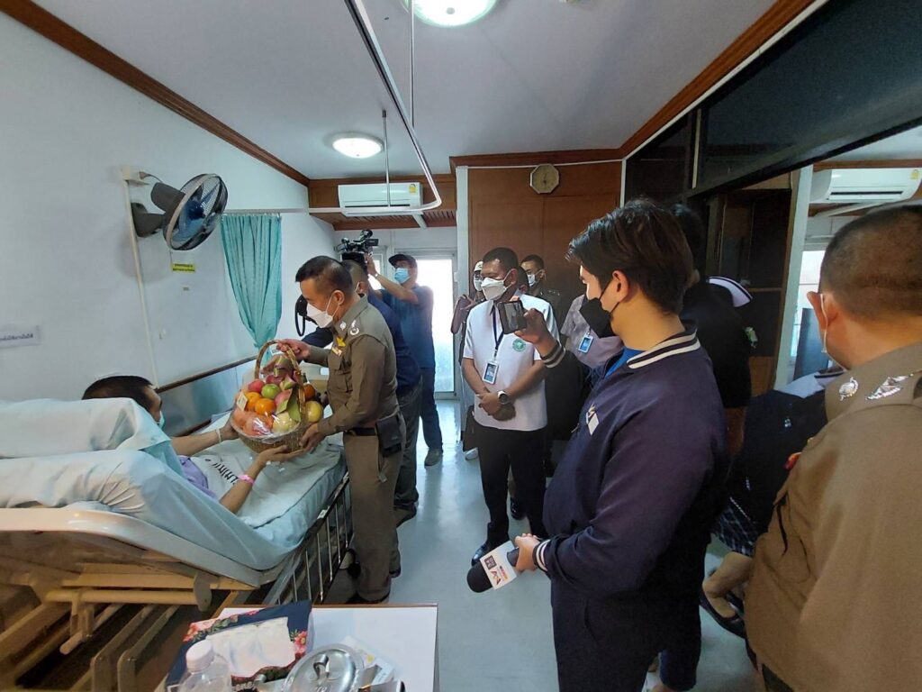 จากนั้น พล.ต.ท.ปิยะ ต๊ะวิชัย ผบช.ภ.5 พร้อมด้วยผู้บังคับบัญชา ได้ไปเยี่ยม ส.ต.ท.นิพัฒน์ฯ ที่ถูกอาวุธปืนยิงขณะเข้าทำการจับกุม ซึ่งพักรักษาตัวที่ รพ.ศูนย์ลำปาง และได้มอบกระเช้าและเงินช่วยเหลือค่ารักษาพยาบาลเพื่อเป็นขวัญและกำลังใจให้กับ ส.ต.ท.นิพัฒน์ฯ ต่อไป