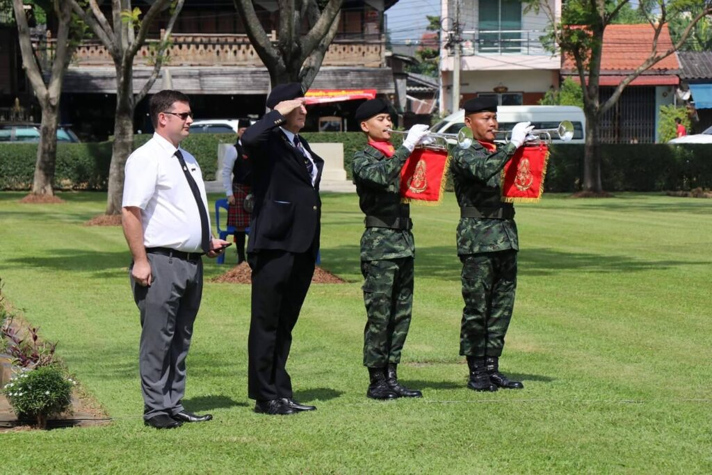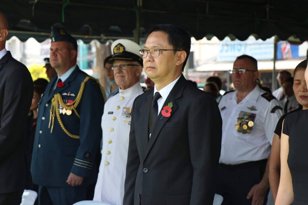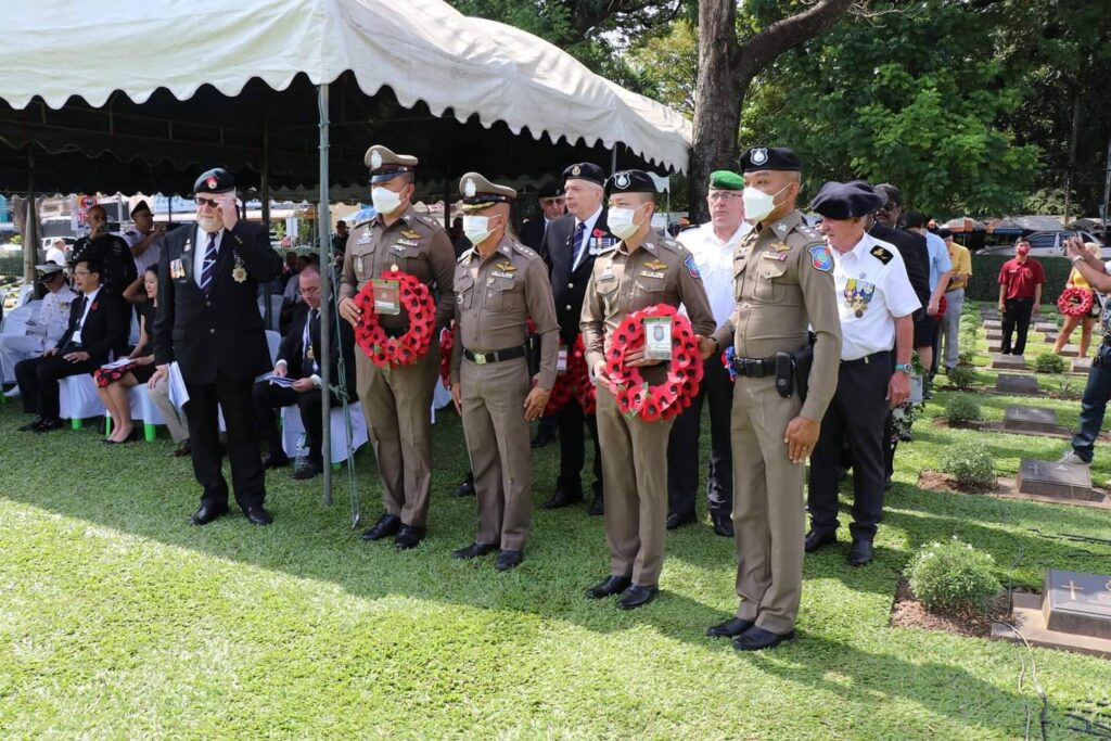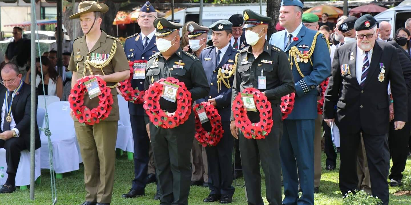 วันนี้ (11 พฤศจิกายน พ.ศ.2565) เวลา 10.30 น. ที่สุสานทหารสัมพันธมิตรดอนรัก ตำบลบ้านเหนือ จังหวัดกาญจนบุรี นาย มาร์ค โบว์ลิ่ง ประธานอาสาสมัครแห่งราชอาณาจักรอังกฤษ ประจำประเทศไทย ผู้แทนเอกอัครราชทูตอัง กฤษ ประจำประเทศไทย พร้อมด้วย พันเอก โทนี สเติร์น ผู้ช่วยทูตทหารสถานเอกอัครราชทูตอังกฤษ ประจำประเทศไทย ร้อยโท ทศพล ไชยโกมินทร์ ผู้ว่าราชการจังหวัดกาญจนบุรี ผู้แทนประเทศไทย ร่วมวางพวงมาลารำลึกถึงทหาร ผ่านศึก และ คณะทูตทหาร ผู้แทนจากประเทศต่างๆ ทั้งราชอาณาจักรเนเธอร์แลนด์ สาธารณ รัฐประชาชนบังกลาเทศ สาธารณรัฐเคนยา สาธารณรัฐอินเดีย สหรัฐอเมริกา ประเทศนิวซีแลนด์ เครือรัฐออสเตรเลีย ประเทศแคนาดา สาธารณรัฐสิงคโปร์ ประเทศมาเลเซีย สหพันธ์สาธารณรัฐเยอรมนี ทหาร ตำรวจ อดีตทหาร ผ่านศึกและประชาชนจากหลายประเทศ ร่วมรำลึกถึงวีรกรรมของนักรบ ผู้เสียสละเนื่องในพิธีรำลึกทหารผ่านศึก
