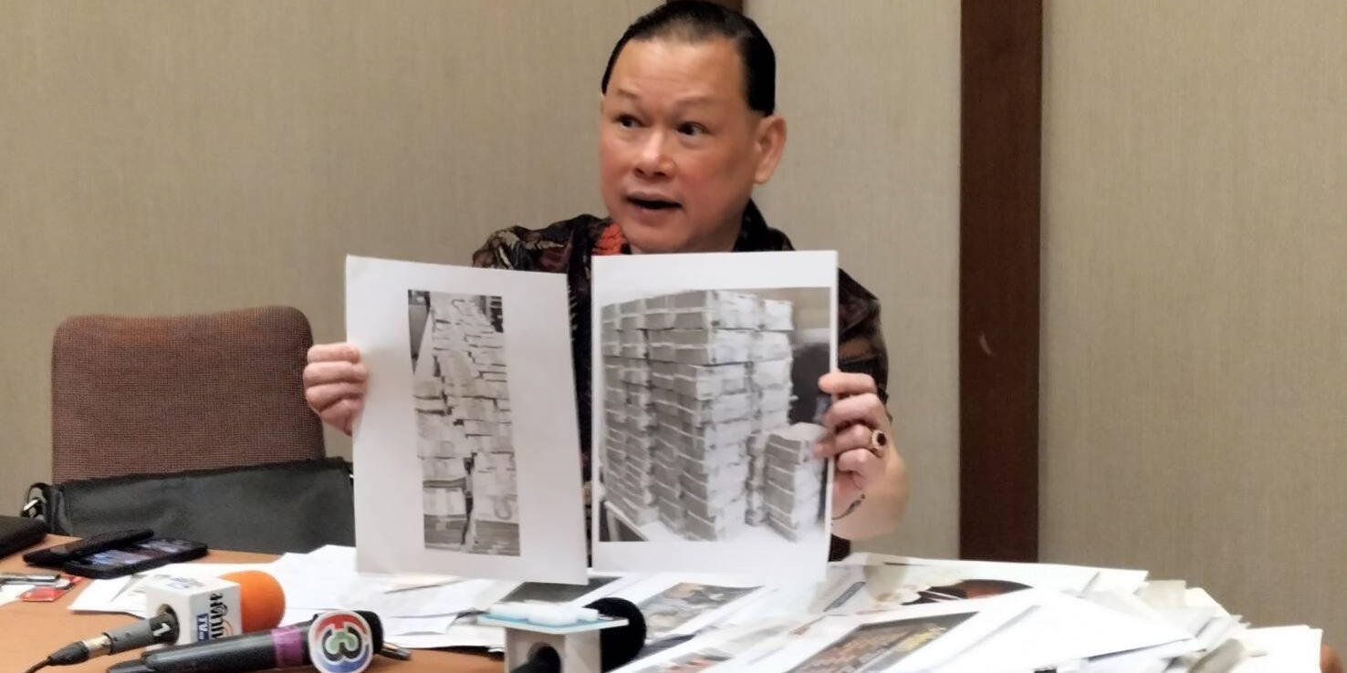 นอกจากนี้นายสันธนะฯ ยัง ระบุถึงกรณีของกองสลากพลัสว่ามีผู้ที่เกี่ยวข้องกับเว็บดังกล่าวถูกออกหมายจับในข้อหาฟอกเงินจำนวน 2 ราย และหลบหนีออกนอกประเทศ และนำรูปภาพเงินเป็นมัดๆที่อ้างว่าอยู่ในเซฟเฮ้าท์ และรถหรูบางคันไปจำนำอีกด้วย จึงอยากให้สื่อมวลชนไปถามว่าทางกองสลากพลัส รู้จัก 2 คนนี้หรือไม่