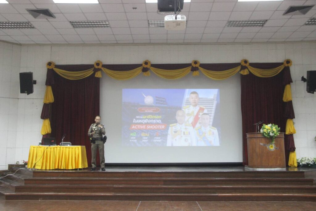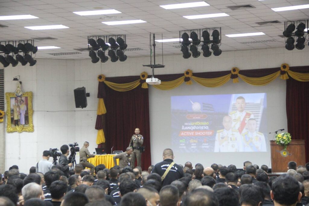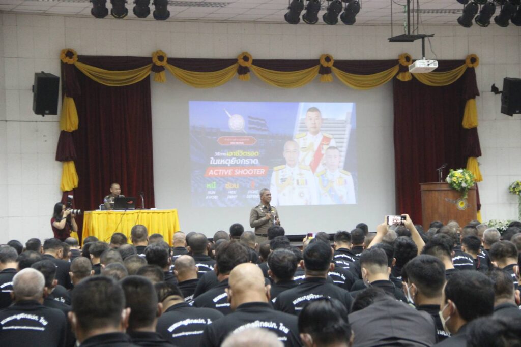 และกฎหมายอื่นที่เกี่ยวข้อง สามารถนำความรู้ที่ได้ไปปรับใช้ในการยกระดับมาตรฐานธุรกิจรักษาความปลอดภัย และเสริมสร้างศักยภาพของพนักงานรักษาความปลอดภัยรับอนุญาต กองบัญชาการตำรวจนครบาล จึงได้จัดทำ “โครงการฝึกอบรมวิทยากรหลักสูตรการรักษาความปลอด.ภัยตามพระราชบัญญัติธุรกิจรักษาความปลอดภัย พ.ศ.2558 ครั้งที่ 2/2565 : การฝึกเอาชีวิตรอด และการบริหารเหตุการณ์วิกฤติ กรณี “มือปืนยิงกราด” สำหรับ เจ้าหน้าที่รักษาความปลอดภัย” ขึ้นในวันนี้ และให้ผู้เข้าร่วมอบรมทุกคนสามารถนำความรู้ที่ได้กระจายสู่เจ้าหน้าที่รักษาความปลอดภัยรับอนุญาตทั่วประเทศต่อไป