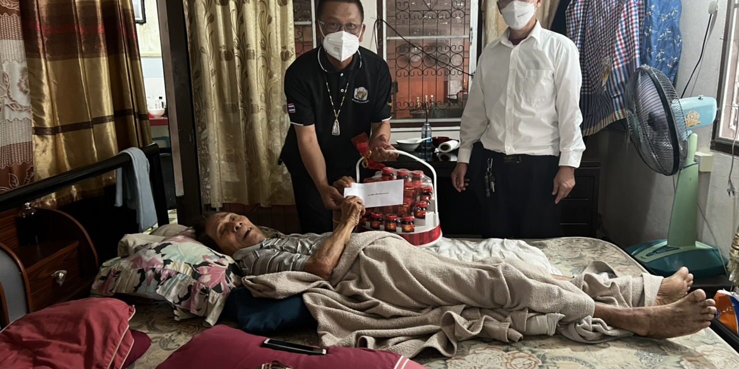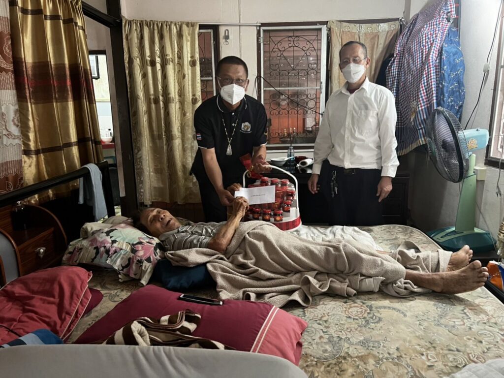 และทางสมาคมได้มอบกระเช้าพร้อมเงินจำนวนหนึ่งให้ไปใช้กิจวัตรประจำวัน