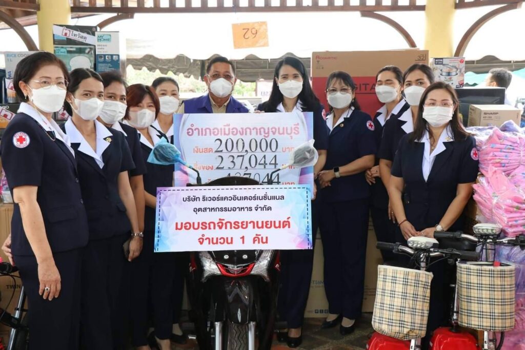 วันนี้ (14 พฤศจิกายน 2565) ตั้งแต่เวลา 10.00 น. ที่ บริเวณสวนสาธารณะริมน้ำแม่กลอง ด้านหน้าจวนผู้ว่าราชการจังหวัดกาญจนบุรีหลังใหม่ อำเภอเมือง จังหวัดกาญจนบุรี ร้อยโท ทศพล ไชยโกมินทร์ ผู้ว่าราชการจังหวัดกาญจนบุรี พร้อมด้วย รศ.ดร.พญ.เรวิกา ไชยโกมินทร์ นายกเหล่ากาชาดจังหวัดกาญจนบุรี และคณะรองนายกเหล่ากาชาดจังหวัดกาญจนบุรี คณะสมาชิกเหล่ากาชาดจังหวัดกาญจนบุรี ร่วมรับมอบสิ่งของสนับสนุนจากหน่วยงานภาครัฐ รัฐวิสาหกิจ ภาคเอกชน องค์การปกครองส่วนท้องถิ่นในจังหวัดกาญจนบุรี เพื่อนำไปใช้เป็นรางวัลในการออกร้านกาชาดในงานสัปดาห์สะพานข้ามแม่น้ำแควและงานกาชาด ประจำปี 2565 ระหว่างวันที่ 26 พฤศจิกายน – 5 ธันวาคม พ.ศ.2565 จัดขึ้นที่ บริเวณลานข้างองค์การบริหารส่วนจังหวัดกาญจนบุรีและสะพานข้ามแม่น้ำแคว อำเภอเมือง จังหวัดกาญจนบุรี ซึ่งมีผู้นำเงินและสิ่งของมาบริจาคมากมาย ทั้งรถจักรยานยนต์ รถจักรยาน เครื่องใช้ไฟฟ้า เครื่องนอน ของเล่นเด็ก และรถยนต์ โตโยต้า ยาริส ที่จะนำไปเป็นรางวัลใหญ่ของกิจกรรมสลากกาชาดการกุศล