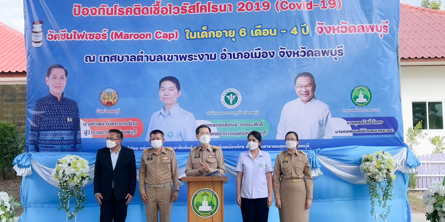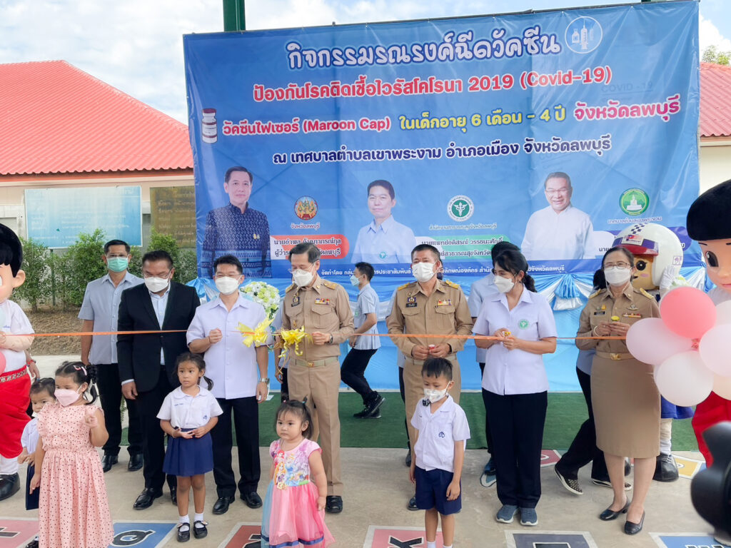 โดยโรงพยาบาลพระนารายณ์มหาราช จ.ลพบุรี นำโดย แพทย์หญิงนุชรินทร์ อักษรดี ผู้อำนวยการโรงพยาบาล แพทย์หญิงปาริชาติ ติระวัฒน์ รองผู้อำนวยการกลุ่มภารกิจด้านพัฒนาระบบบริการและสนับสนุนบริการสุขภาพ พร้อมทีมแพทย์ พยาบาล และสหวิชาชีพร่วมทีมฉีดวัคซีน และให้คำแนะนำการดูแลตนเอง วันที่ 14 พฤศจิกายน 2565 เวลา 14.00 น. ที่ อาคารศูนย์พัฒนาเด็กเล็กเทศบาลตำบลเขาพระงาม อำเภอเมืองลพบุรี จังหวัดลพบุรี นายอำพล อังคภาภรณ์กุล ผู้ว่าราชการจังหวัดลพบุรี เป็นประธานเปิดกิจกรรมรณรงค์ ฉีดวัคซีนป้องกันโรคโควิด-19 ในกลุ่มเด็กเล็กอายุ 6 เดือน ถึง 4 ปี ของจังหวัดลพบุรี จำนวน 100 คน ซึ่งจากสถานการณ์โรคโควิด-19ในปัจจุบันนี้ ถึงแม้ว่าถูกปรับลดระดับความรุนแรง ให้เป็นโรคที่เฝ้าระวัง การได้รับวัคซีนจึงเป็นเครื่องมือที่สำคัญในการทำให้ลดการติดเชื้อและลดความรุนแรงลงได้ ซึ่งในวันนี้ (14พ.ย.65) เวลา14.00น.ยังได้มีการฉีดวัคซีนโควิด-19สำหรับเด็กอายุ 6เดือนถึง 4 ปีพร้อมกันทุกอำเภอด้วย