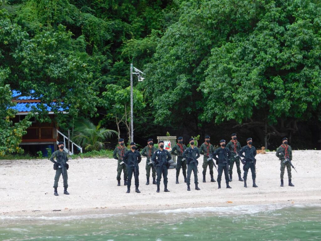 วันนี้ 18 พฤศจิกายน 2565 ที่ หลักเขตที่ B/1 เกาะปราสมานา ต.ปูยู อ.เมือง จ.สตูล พล.ต.วรเดช เดชรักษา ผบ.พล.ร.5/ผบ.กกล.เทพสตรีเดินทางตรวจเยี่ยมการปฏิบัติงาน ของ มว.ปล.ที่ 3 ร้อย.ร.5021 และ ชฝต.4301 โดยได้มอบนโยบายแนวทางในการปฏิบัติงานและเน้นย้ำข้อสั่งการ ของ ผบช. พร้อมมอบของบำรุงขวัญเพื่อเป็นขวัญกำลังใจให้แก่กำลังพล ณ เกาะปราสมานา ต.ปูยู อ.เมือง จ.สตูล โดย พ.อ.เรวัตร เซ่งเข็ม ผบ.ร.5 พัน.2/รอง.ผบ.ฉก.ร.5 ร่วมต้อนรับพร้อมกับหัวหน้าส่วนหลายหน่วยและ ชุดชปพ.ศรชล.ทรภ.3 จ.สตูล,ศรชล.สตล,ตชด.436 สตูล ตำรวจน้ำสตูลทหารกองกำลังเทพสตรีเปิดปฏิบัติการปกป้องชายแดน โดยเฉพาะพื้นที่ จ.สตูล พบว่ามีจุดอ่อนที่คาบเกี่ยวกันระหว่างทางบกและทางทะเล ทำให้ง่ายต่อการกระทำความผิดได้ ทหารต้องเสริมกำลังพลในการปกป้อง ร่วมกับทหารเรือ และบูรณาการกำลังทุกฝ่ายทั้งฝ่ายปกครอง รวมทั้งท้องถิ่นในการเฝ้าระวัง ทั้งทางทะเลและทางบก โดยเน้นการทำงานเชิงรุก ลาดตระเวนตรวจตรา วิเคราะห์เส้นทาง และจุดเสี่ยงง่ายต่อการทำผิดกฎหมาย