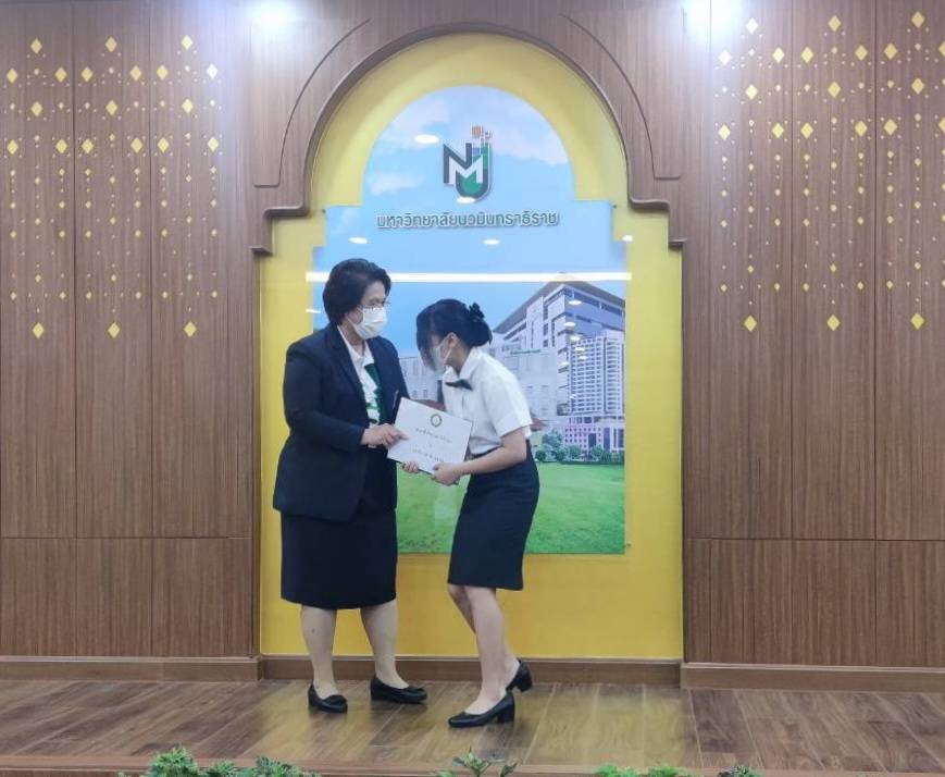 โดยมี ผศ.พวงผกา กรีทอง ผู้ช่วยอธิการบดีมหาวิทยาลัยนวมินทราธิราช เป็นตัวแทนในการมอบครั้งนี้