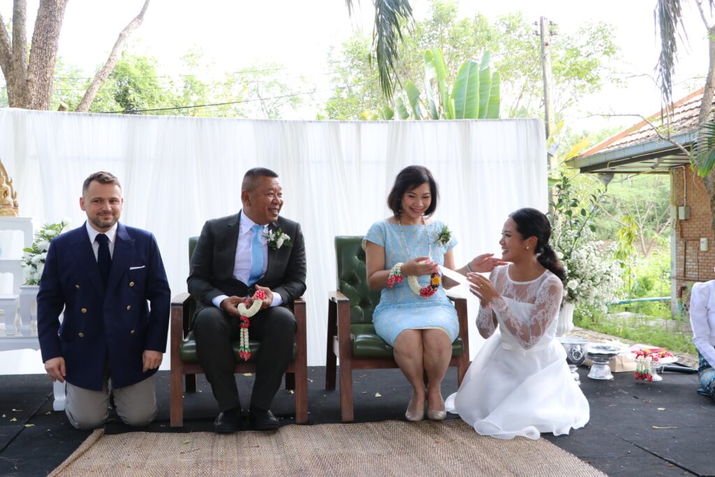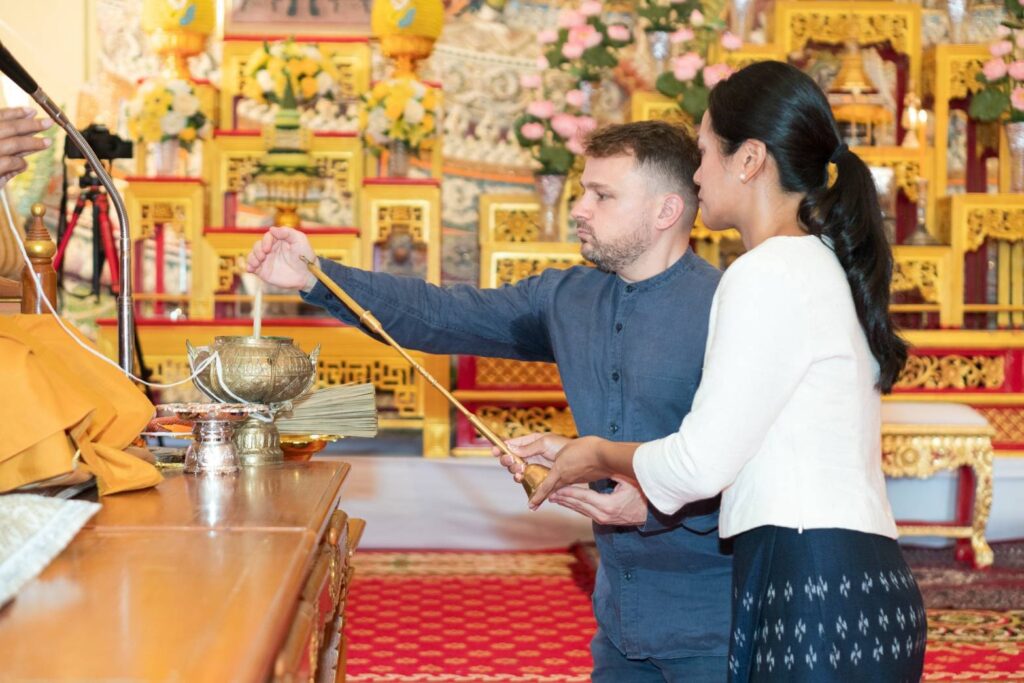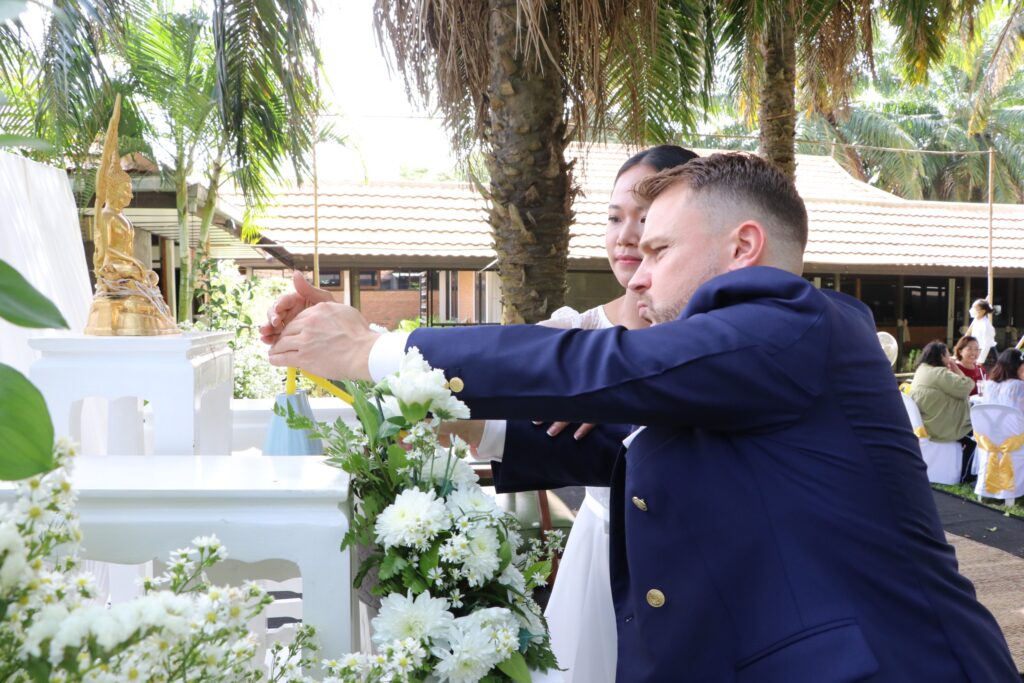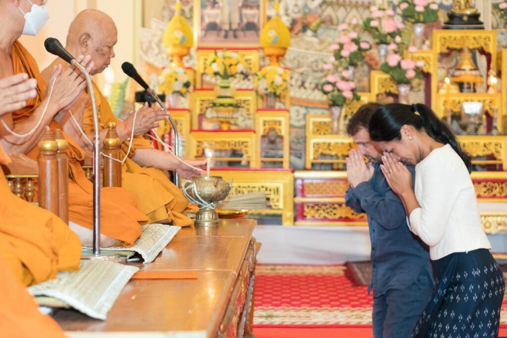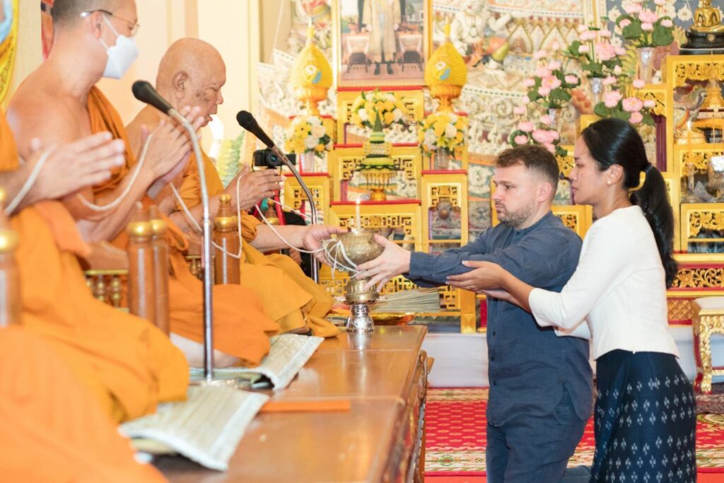 เมื่อวันที่ 19 พ.ย. 65 ที่วัดพระนารายณ์มหาราช วรวิหาร ต.ในเมือง อ.เมือง จ.นครราชสีมา ผู้สื่อข่าวรายงานว่า นายไซม่อน มาร์ติน อายุ 41 ปี ชาวแคนาดา แต่เติบโตที่ฝรั่งเศส ได้จัดพิธีแต่งงานกับ น.ส.พิมพ์ชนก สุคันธศรี อายุ 33 ปี ชาวจังหวัดขอนแก่น พิธีจัดเรียบง่ายแบบประเพณีวัฒนธรรมไทยของชาวพุทธ โดยเวลา 06.00 น. นายไซม่อน มาร์ติน ได้ขอเป็นลูกศิษย์วัดเดินสะพายย่ามออกตามพระไปบิณฑบาตในตลาดหลักเมือง ก่อนจะมาทำพิธีแต่งงานถวายภัตตาหารเช้าพระภายในอุโบสถ วัดพระนารายณ์มหาราช วรวิหาร