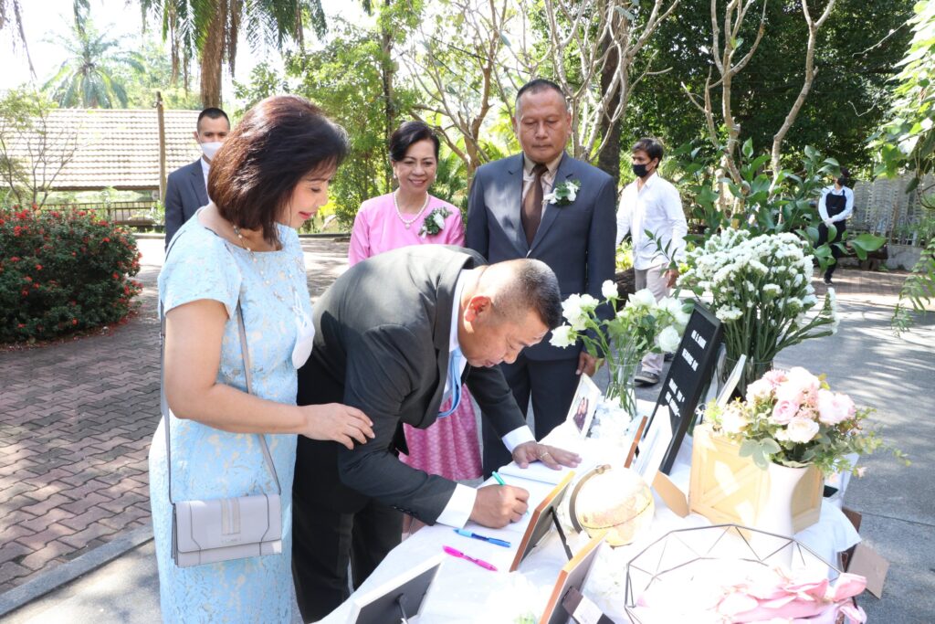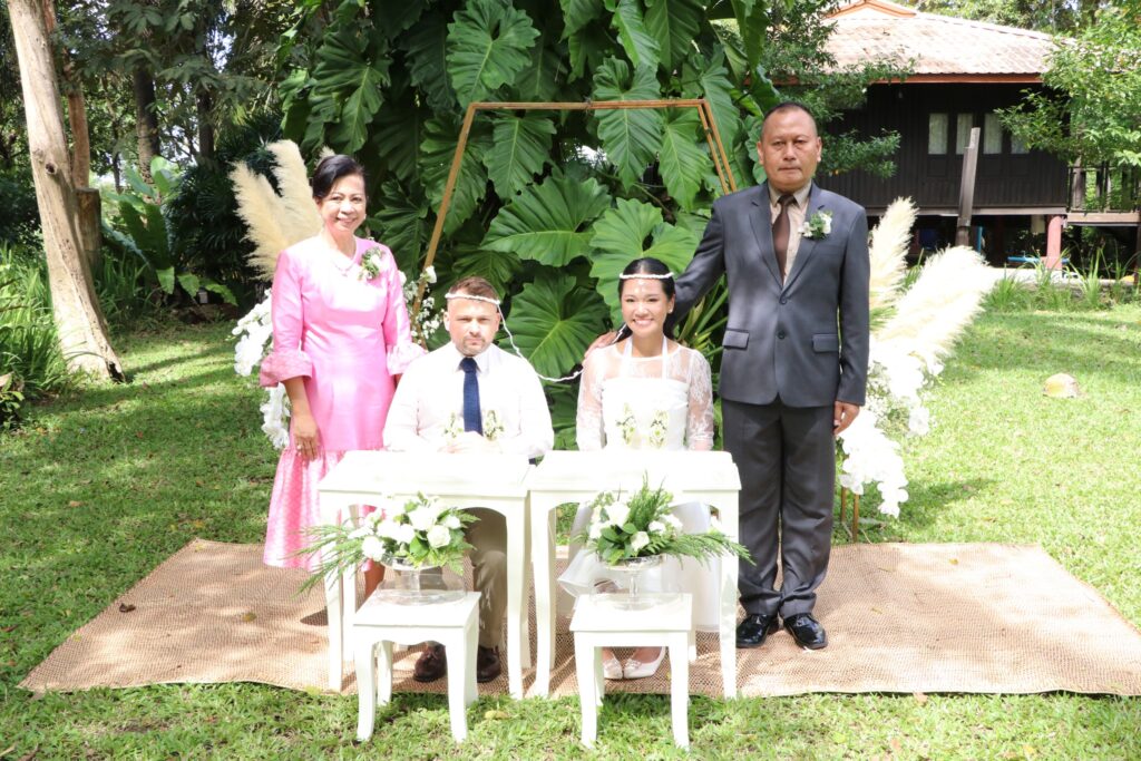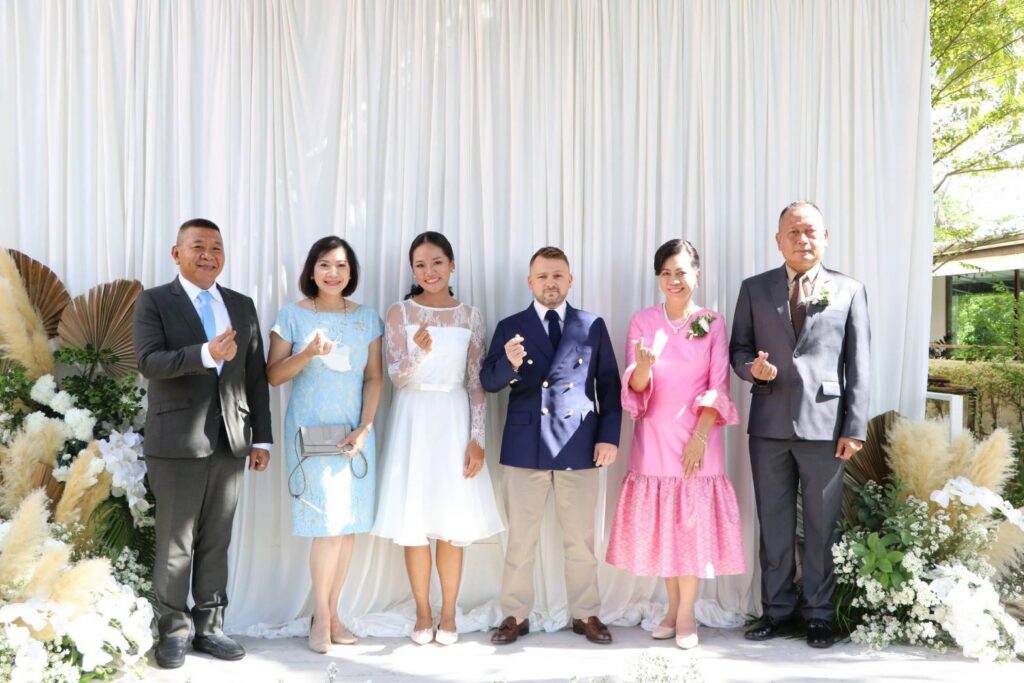 จากการสอบถาม น.ส.พิมพ์ชนก สุคันธศรี เจ้าสาว กล่าวว่า เกิดที่อำเภอเมือง จังหวัดขอนแก่น เป็นบุตรสาวของ พลตรี ปริชญ์ สุคันธศรี ผู้บัญชาการมณฑลทหารบกที่ 28 และคุณภัทรพร สุคันธศรี ประธานสมาคมแม่บ้านทหารบก สาขา มณฑลทหารบกที่ 28 การศึกษาจบปริญญาตรี คณะการท่องเที่ยวยั่งยืน วิทยาลัยนานาชาติเพื่อการศึกษาความยั่งยืน มหาวิทยาลัยศรีนครินทร์วิโรฒ ประสานมิตร ปริญญาโท (เกียรตินิยมอันดับ 2) คณะการพัฒนาระหว่างประเทศ Globalisation, Business and Development มหาวิทยาลัยซัสเซ็กส์ ประเทศอังกฤษ (ได้รับทุนชีฟนิ่งเต็มจำนวนจากรัฐบาลสหราชอาณาจักร) การทำงาน เป็นเจ้าหน้าที่ขององค์การระหว่างประเทศเพื่อการโยกย้ายถิ่นฐาน ภายใต้องค์การสหประชาชาติ ประจำประเทศไทย ได้พบรักกับไซม่อน จากที่ได้ทำงานร่วมกัน ซึ่งตนเป็นเจ้าหน้าที่ขององค์การระหว่างประเทศเพื่อการโยกย้ายถิ่นฐาน ภายใต้องค์การสหประชาชาติ ประจำประเทศไทย ส่วนไซม่อน เกิดที่รัฐมอนทรีออล ประเทศแคนาดา (เติบโตในประเทศฝรั่งเศส การศึกษาจบปริญญาโทจากคณะบริหารการจัดการการโรงแรมระหว่างประเทศ จากมหาวิทยาลัย ลา โรเชล ประเทศฝรั่งเศส และปริญญาโท (เกียรตินิยมอันดับ 1) จากคณะการพัฒนาเศรษฐกิจการท่องเที่ยวระหว่างประเทศ จากมหาวิทยาลัยปองเตออง-ซอร์บอน (Pantheon-Sorbonne University) เมืองปารีส ประเทศฝรั่งเศส การทำงาน ก่อนหน้านี้ทำงานในตำแหน่งผู้บริหารของสถาบันความร่วมมือและการพัฒนาแห่งยุโรป European Institute of Cooperation and Development (IECD) ในภูมิภาคตะวันออกเฉียงใต้ (ประจำที่ อ.แม่สอด จ.ตาก ประเทศไทย เมืองย่างกุ้ง ประเทศเมียนมา, และประเทศอังกฤษ) ตั้งแต่ปี พ.ศ. 2556 – พ.ศ.2565 ปัจจุบันเป็นผู้บริหารฝ่ายปฏิบัติการ (Director of Operations) โรงแรมแฟร์มอนต์ เมืองมอนเตเบลโล ประเทศแคนาดา หลังจากคบกันมาได้ 7 ปี จึงตัดสินใจแต่งงานกันโดยตั้งใจจะจัดแบบเรียบง่าย ในแบบพิธีพุทธ และ ได้เลือกวัดพระนารายณ์มหาราช วรวิหาร ในการประกอบพิธีเพราะว่าเป็นวัดไทยที่เก่าแก่มีความเชื่อมโยงกับประเทศฝรั่งเศส โดยตัวไซม่อนเองอยากที่จะสัมผัสและเข้าถึงวัฒนธรรมไทยจึงได้ขอทำบุญด้วยการเป็นเด็กวัดเดินตามพระออกบิณฑบาตในตอนเช้า ร่วมกันถวายภัตตาหารเช้าพระสงฆ์ ภายในอุโบสถ วัดพระนารายณ์มหาราช วรวิหาร อ.เมือง นครราชสีมา ก่อนเข้าพิธีวิวาห์กับเจ้าสาวแบบเรียบง่าย โดยมี พลโท สวราชย์ – คุณสุกัญญา แสงผล แม่ทัพภาคที่ 2 และภริยา เป็นประธานในพิธีรดน้ำสังข์ กล่าวอวยพรคู่บ่าวสาว โดยมีแขกข้าราชการระดับสูงทั้งในอดีตและยังรับราชการในกองทัพภาคที่ 2 เข้าร่วมแสดงความยินดีอย่างอบอุ่น ณ บ้านสวนปาล์มสุข ต.โคกกรวด อ.เมือง จ.นค