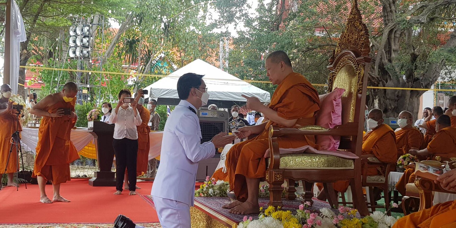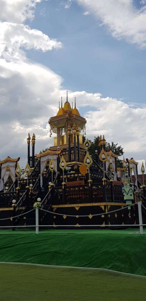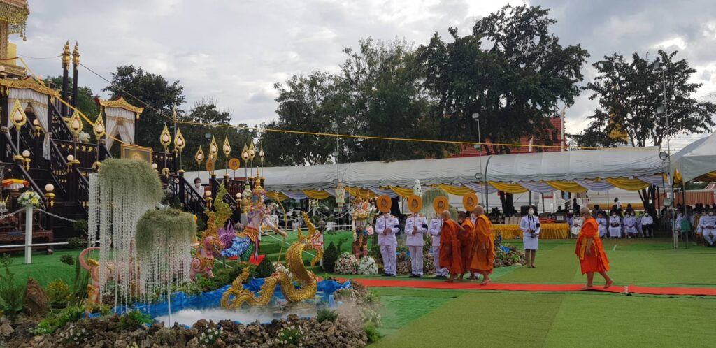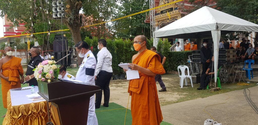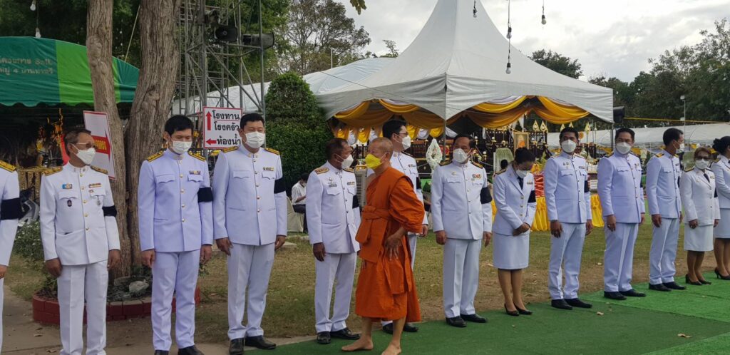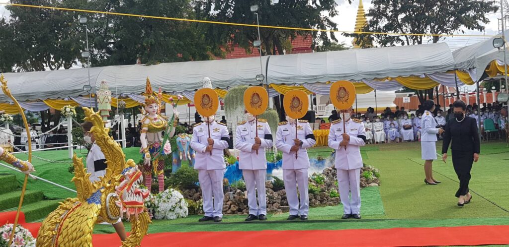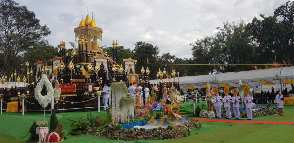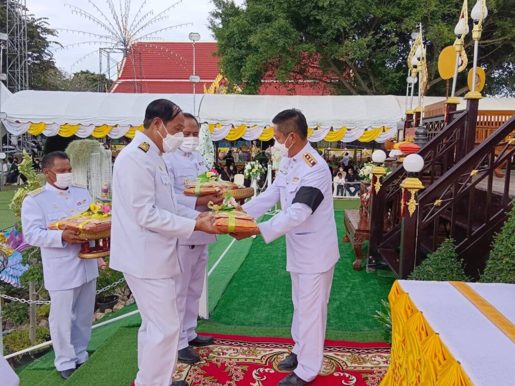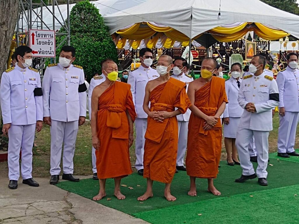กรุงเทพมหานคร ประธานฝ่ายสงฆ์ประธานฝ่ายฆาราวาส ร้อยโท ทศพล ไชยโกมินทร์ ผู้ว่าราชการจังหวัดกาญจนบุรี.โดยมี คุณโกวิท เพชรงาม ผอ.กอง.กลุ่มพิธีการศพที่ได้รับพระราชทานจากสนง.วัฒนธรรมจังหวัดกาญจนบุรี นำไฟพระราชทานนำขึ้นบน เมรุชั่วคราว
