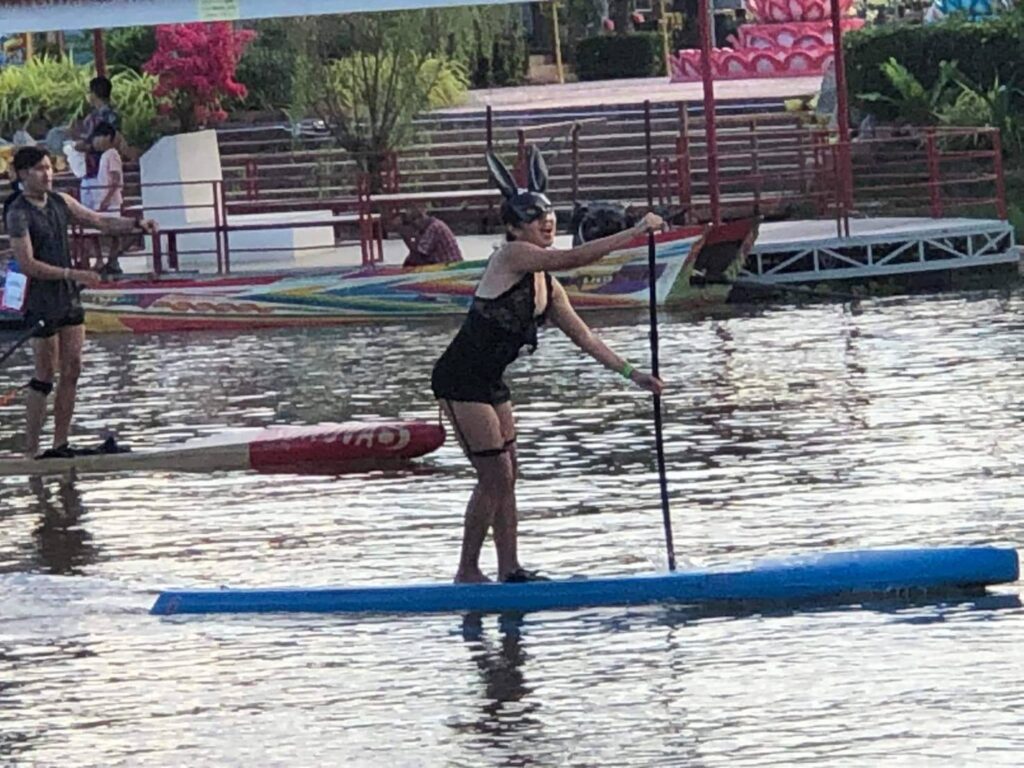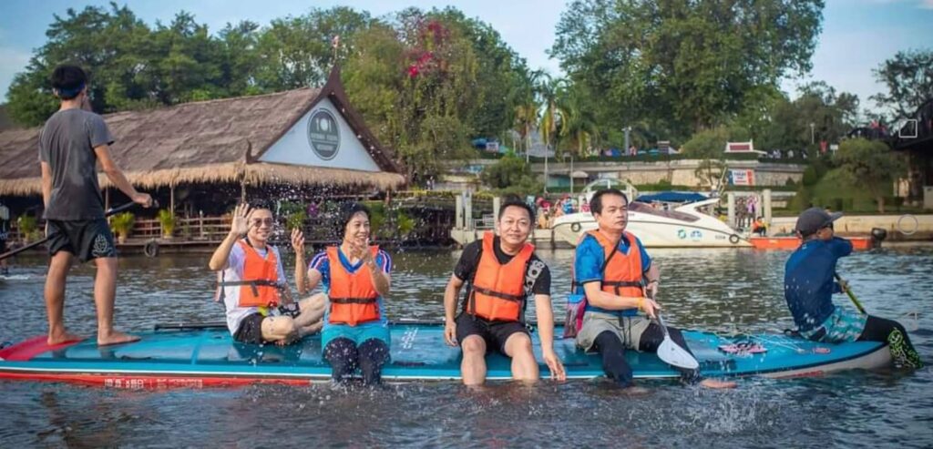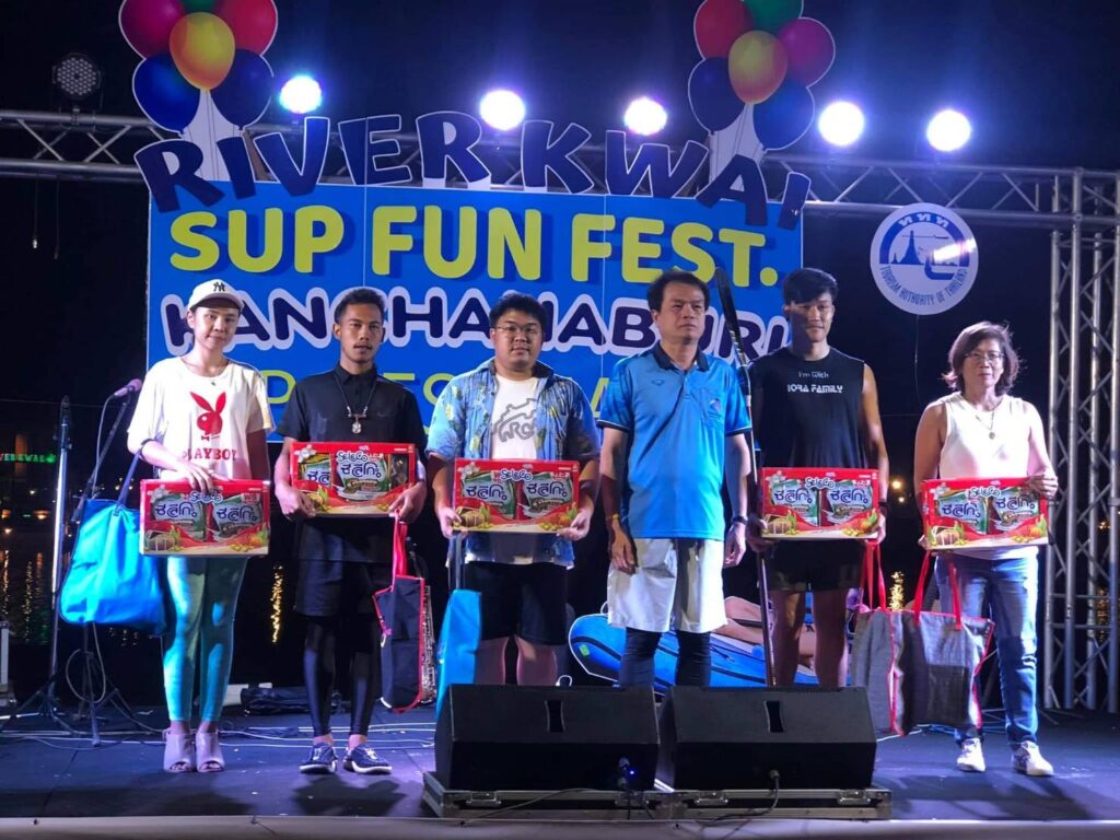 จำนวนผู้เข้าร่วมกิจกรรมพาย SUP มากที่สุดเป็นครั้งแรกของจังหวัดกาญจนบุรี โดยผู้ร่วมกิจกรรมยังได้ร่วมบันทึกภาพกับ “สะพานข้ามแม่น้ำแคว” แหล่งท่องเที่ยวแลนด์มาร์กสำคัญของจังหวัด ทั้งนี้ก่อนลงพายจริง ได้มีการสอนวิธีการพายที่ถูกต้องจากทีมงานที่มีประสบการณ์ให้กับนักพายมือใหม่ หลังจากเข้าเส้นชัยแล้วยังมีงานเลี้ยงสังสรรค์ในบรรยากาศสบาย ๆ ริมแม่น้ำแควใหญ่ มีการแสดงดนตรีสด การออกบูธจำหน่ายอาหาร เครื่องดื่ม ของฝาก และนิทรรศการของกลุ่มผู้ผลิตบอร์ด ให้ผู้ร่วมงานได้เดินชม ตลอดจนมีการประชาสัมพันธ์เชิญชวนให้นักท่องเที่ยวที่มาร่วมงาน ได้เดินทางไปเที่ยวชมแหล่งท่องเที่ยวที่น่าสนใจในตัวเมืองกาญจนบุรีต่อในวันรุ่งขึ้น อาทิ สกายวอล์คสองแควแม่กลอง ถนนปากแพรก โรงงานกระดาษไทยกาญจนบุรี ต้นจามจุรียักษ์ ฯลฯ