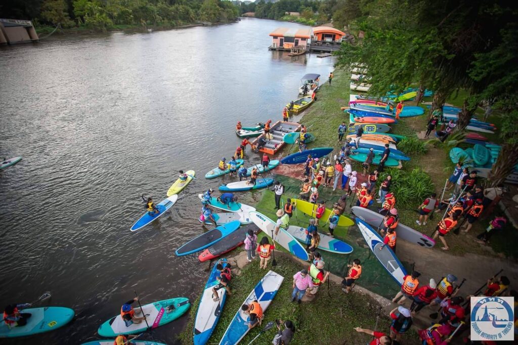 (ททท.) สำนักงานกาญจนบุรี ร่วมกับ ชมรมกระดานยืนพายจังหวัดกาญจนบุรี หน่วยงานพันธมิตรทั้งภาครัฐและเอกชน ร่วมกันจัดกิจกรรมประชาสัมพันธ์ และส่งเสริมการท่องเที่ยวของจังหวัดกาญจนบุรีด้วยกีฬากระดานยืนพาย ในรายการ “River Kwai SUP Fun Fest 2022” ณ บริเวณแม่น้ำแควใหญ่ สะพานข้ามแม่น้ำแคว อ.เมือง จ.กาญจนบุรี ในรูปแบบของการพายท่องเที่ยว และการแข่งขันแบบ Fun Race ระยะทาง 5 กิโลเมตร เส้นทางจากจากมาแคนน์รีสอร์ท ถึงสะพานข้ามแม่น้ำแคว โดยมีนายชำนาญ ชื่นตา รองผู้ว่าราชการจังหวัดกาญจนบุรี ให้เกียรติมาเป็นประธานเปิดงาน พร้อมด้วยแขกผู้มีเกียรติจากหน่วยงานต่าง ๆ และสื่อมวลชน เข้าร่วมงานเป็นจำนวนมากวันที่ 19/พย/65