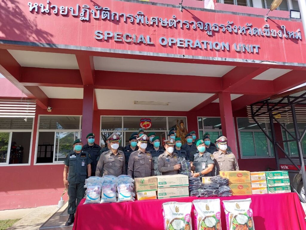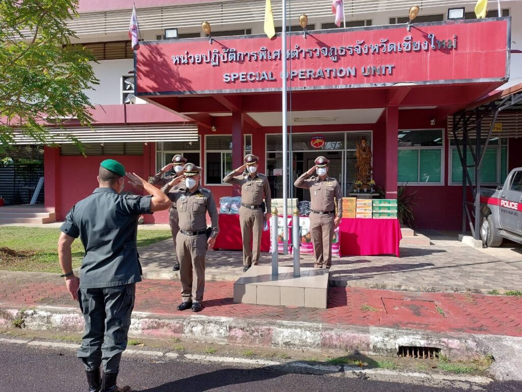 พล.ต.ท.ปิยะ ต๊ะวิชัย ผบช.ภ.5 พร้อมด้วย พ.ต.อ.ไพศาล นันตา รอง ผบก.ภ.จว.เชียงใหม่, พ.ต.อ.ณัฏฐ์ภาณพ วัชระเสวี รอง ผบก.ภ.จว.เชียงใหม่ และ พ.ต.อ.ณัฐพล จันมะโน ผกก.สภ.สันกำแพง ตรวจเยี่ยมและมอบสิ่งของเครื่องใช้ เครื่องอุปโภค บริโภคเพื่อเป็นขวัญกำลังใจ ให้กับข้าราชการตำรวจ สังกัด นปพ.ภ.จว.เชียงใหม่ โดยมี พ.ต.ต.ศุภณัฐ กลัดทอง สว.นปพ.ภ.จว.เชียงใหม่ และข้าราชการตำรวจ นปพ.ภ.จว.เชียงใหม่ ให้การต้อนรับและรับมอบสิ่งของ ณ หน่วย นปพ.ภ.จว.เชียงใหม่ อ.สันกำแพง จว.เชียงใหม่